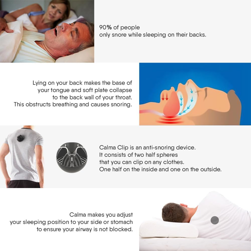 Ball for Side Sleep Posture – Calma Clip by Whole Nights, Sleep Aid for Back Snorers, Anti Snoring Device, Attaches to Any Clothes and Keeps You in a Healthy Sleeping Position