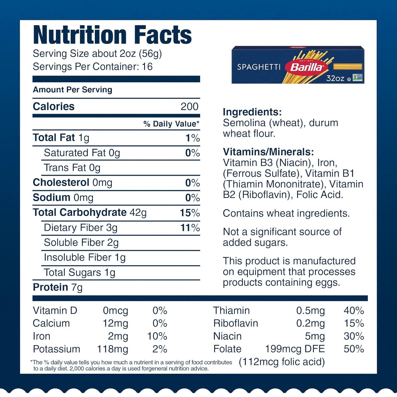 Barilla Spaghetti Pasta, 32 oz. Box – Non-GMO Pasta Made with Durum Wheat Semolina – Kosher Certified Pasta