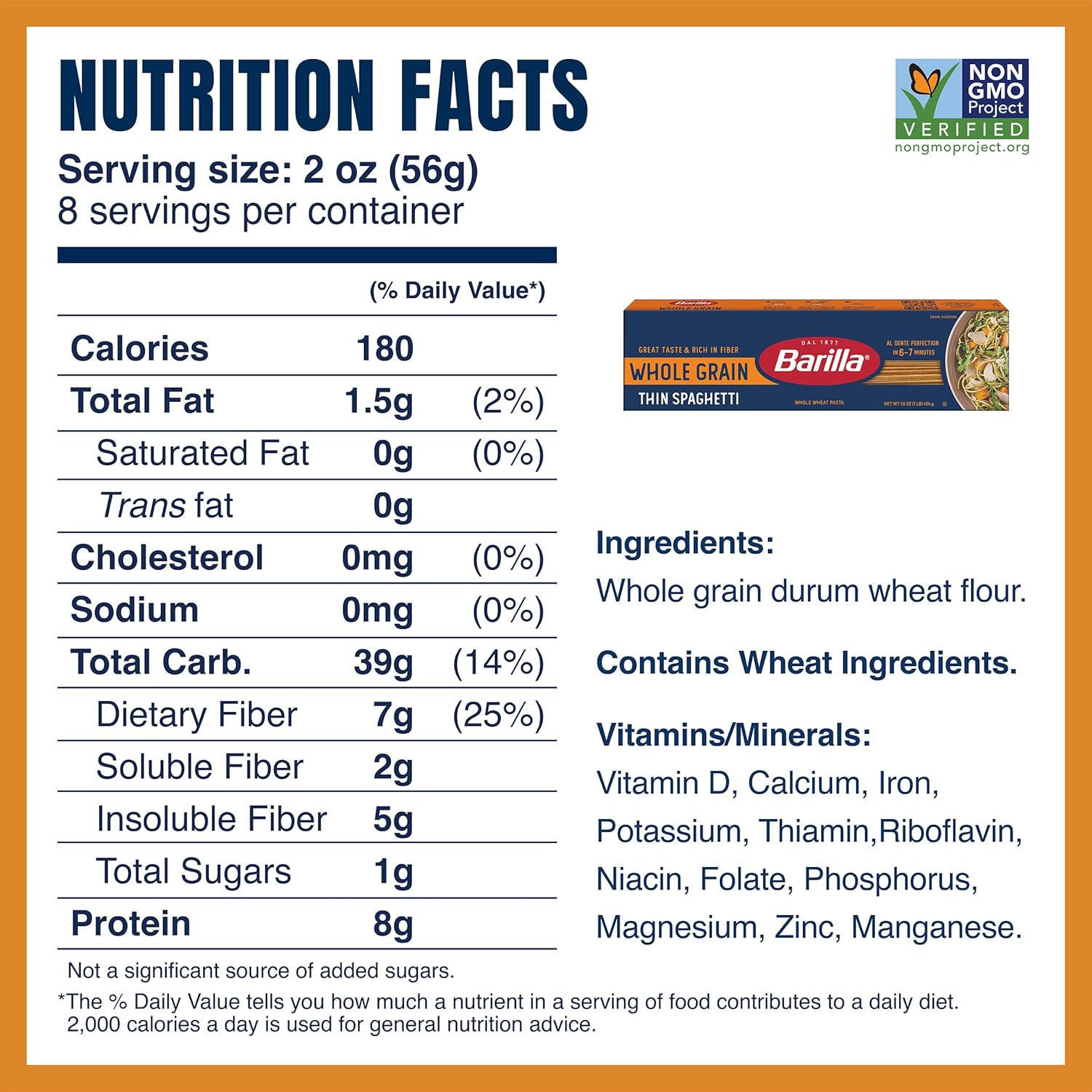 8 reviews for Barilla Whole Grain Thin Spaghetti, 16 oz. Box (Pack of 20) – Non-GMO Pasta Made With 100% Whole Grain Durum Wheat – Great Source of Fiber