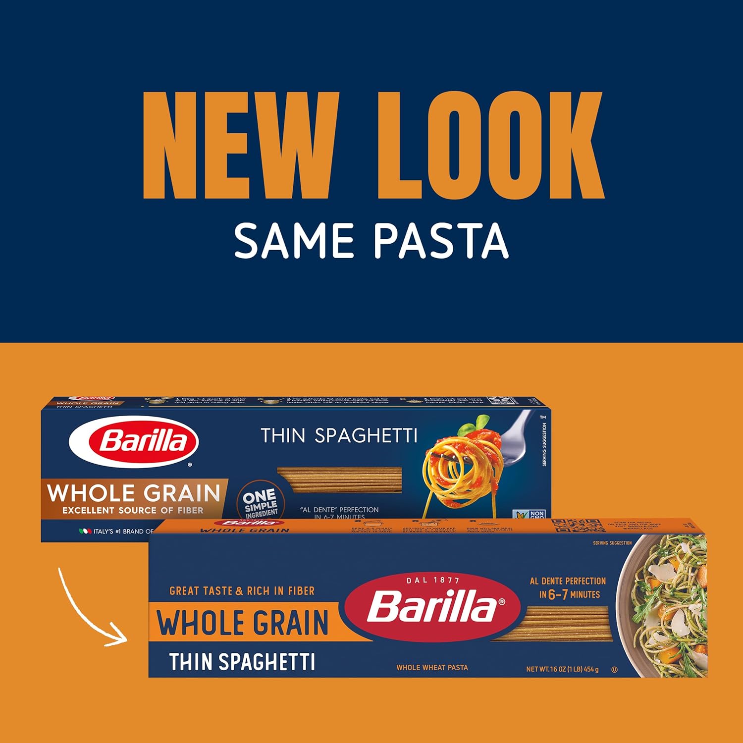 Enjoy a wholesome pasta night with Barilla Whole Grain Pasta. Made with one simple ingredient—whole grain durum wheat flour—this 20-pack of thin spaghetti pasta serves as an excellent source of natural fiber while offering the same delicious Barilla taste that pasta lovers have trusted for generations. Barilla Whole Grain Thin Spaghetti pasta cooks in as little as 6 or 7 minutes and can be prepared just like traditional pasta. Pair with your favorite Barilla sauce for a meal you and your loved ones will savor. Who knew 100% whole grain could be this delicious? Get inspired with Barilla! Enjoy the full range of Barilla pasta and pasta sauces, including Barilla Ready Pasta, Protein Pasta, Gluten Free Pasta, Chickpea Pasta and Red Lentil Pasta.
