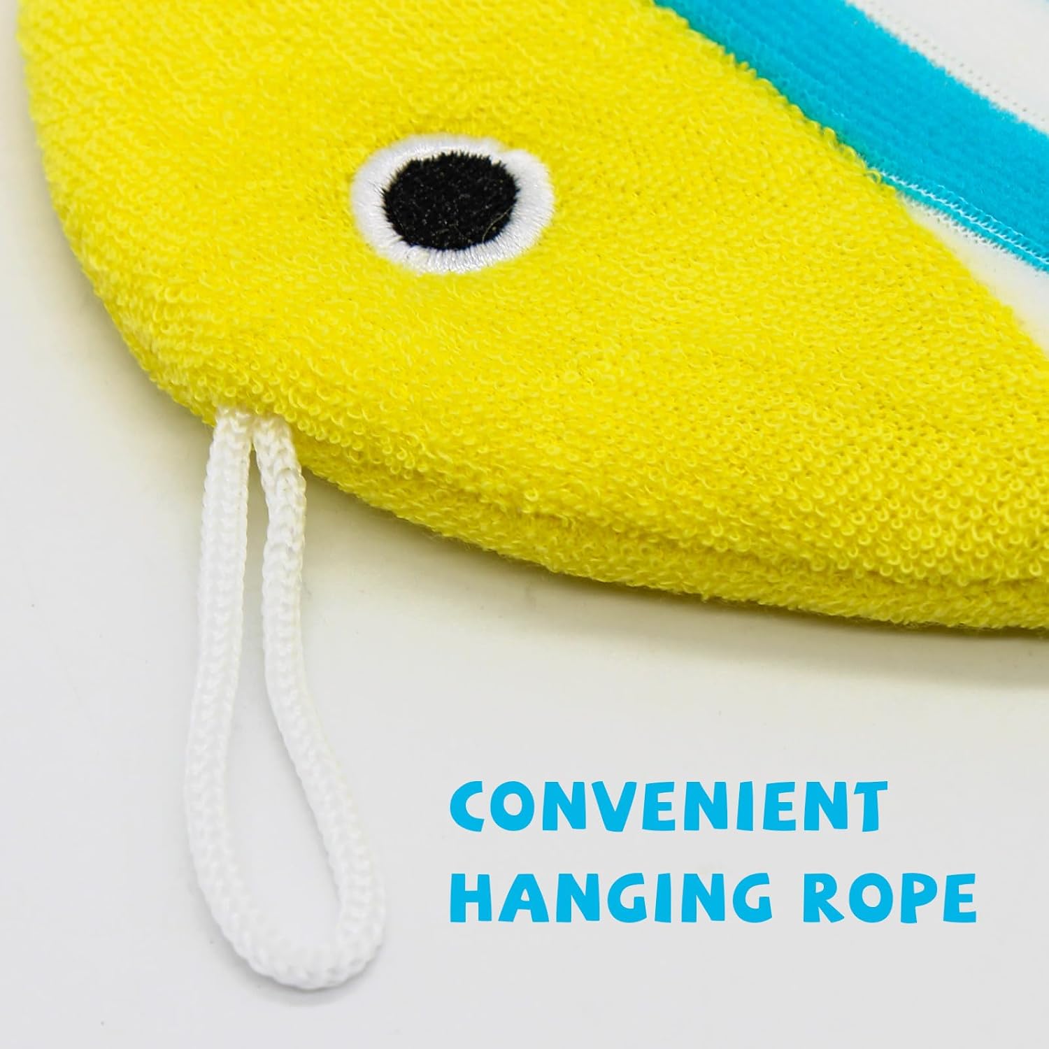 Bath Sponge Glove for Kids Shower Kit, 3pack Cartoon Fish Shape, Stay Clean Bath Towel, Bathroom Kitchen Cleaning Sponges Set for Dishwashing,Bathroom Cleaning, Kitchen Cleaning Supplies