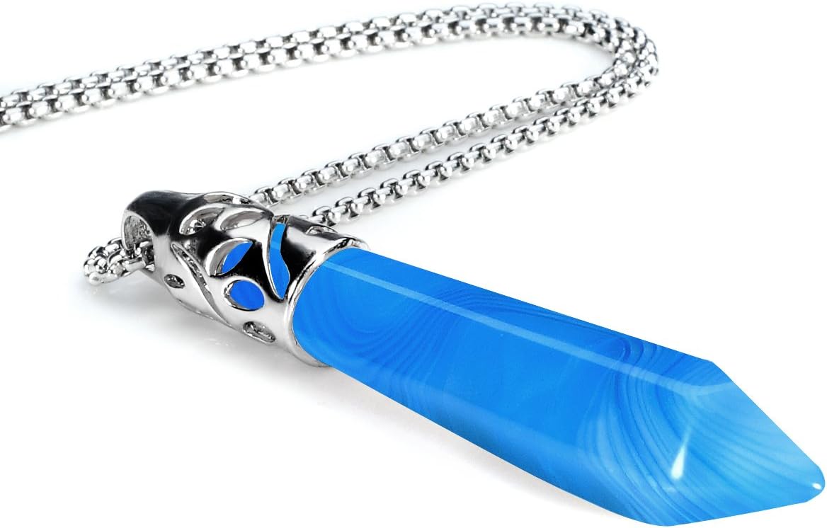 BEADNOVA Healing Crystal Necklace for Women Men Synthetic Blue Banded Agate Crystal Pendant Energy Healing Gemstones Jewelry Pendulum Crystal Divination (Hexagonal, 18 Inches Stainless Steel Chain)
