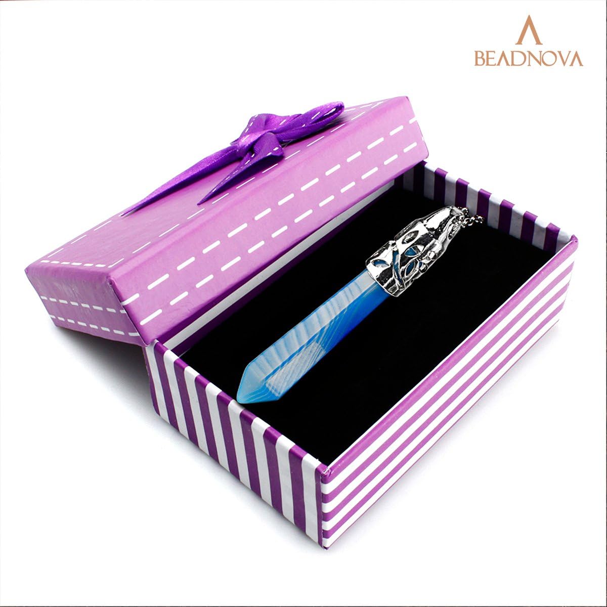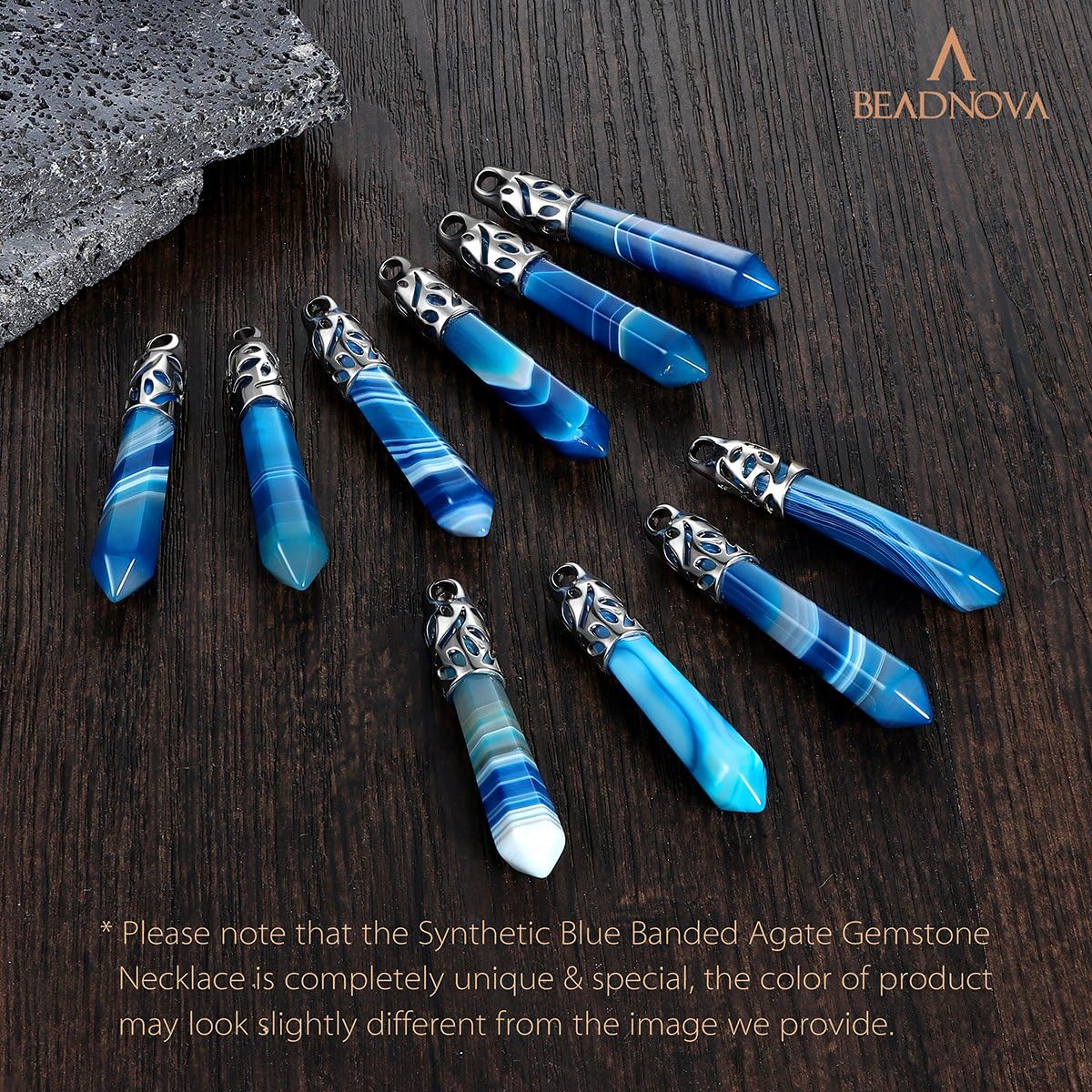 9 reviews for BEADNOVA Healing Crystal Necklace for Women Men Synthetic Blue Banded Agate Crystal Pendant Energy Healing Gemstones Jewelry Pendulum Crystal Divination (Hexagonal, 18 Inches Stainless Steel Chain)
