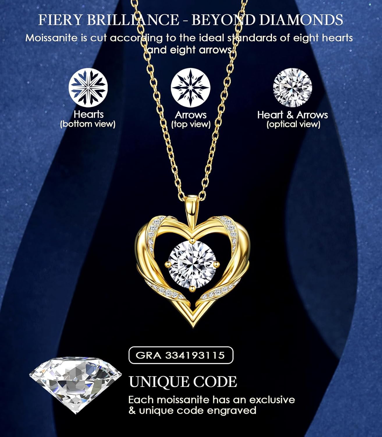 8 reviews for Beam & Bask Heart Pendant 2-3 Ct Moissanite Necklaces for Women, 18K Gold Plated Anniversary Romantic Gifts for Wife, S925 Jewelry Birthday Gifts for Her Girlfriend Mom