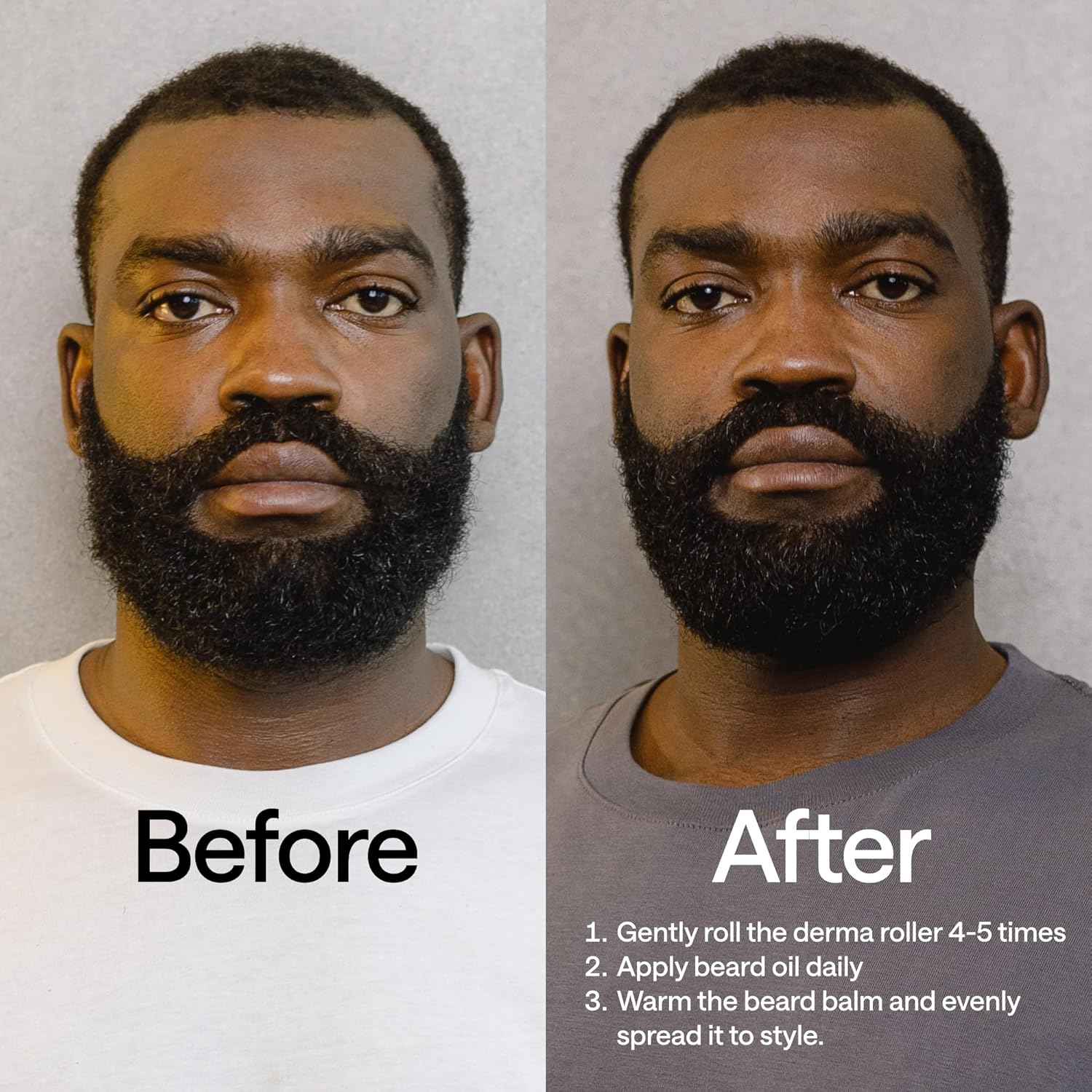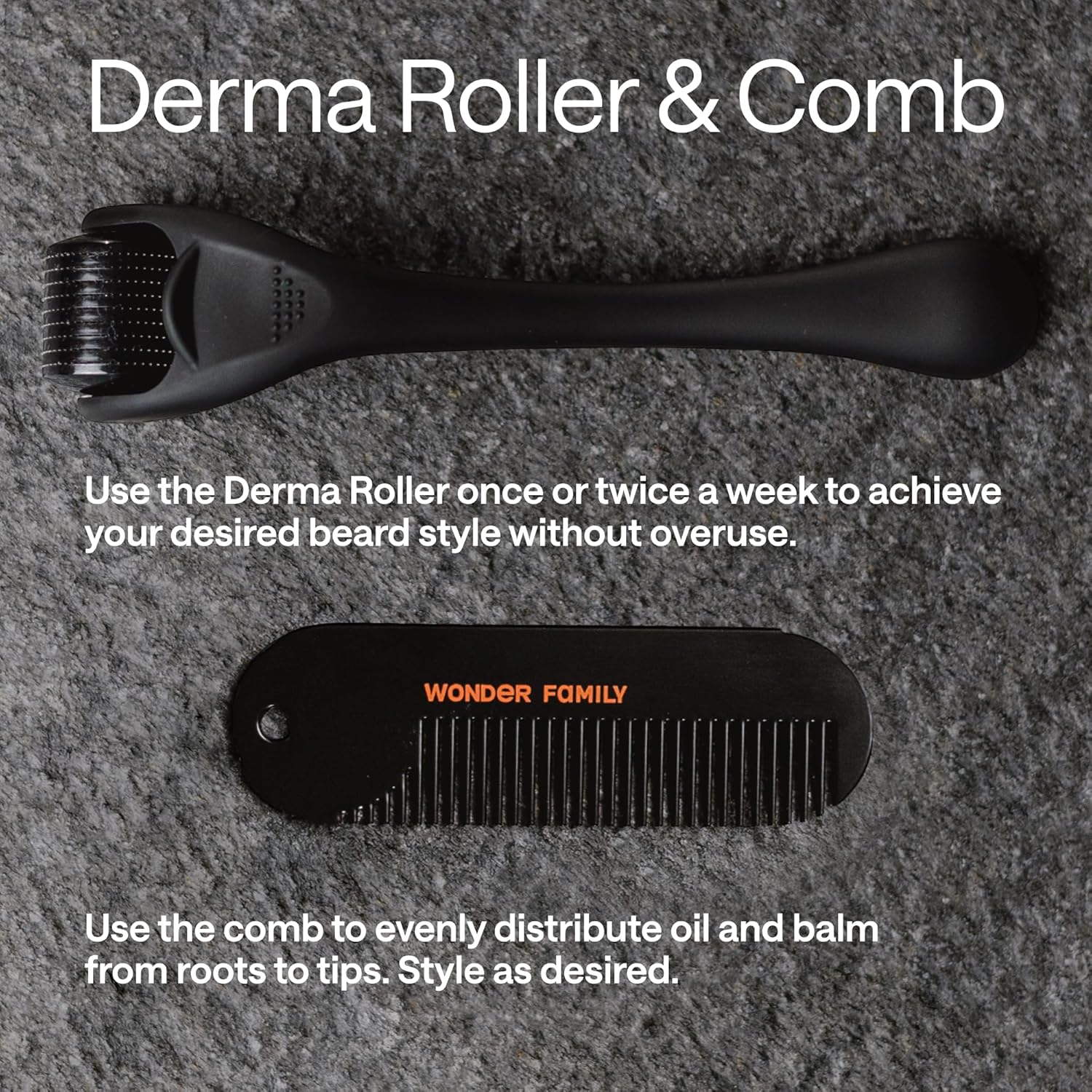 Beard Roller Kit with Comb: beard derma roller for beard growth employs a dermaroller hair growth technology to stimulate follicles and can be used not just for facial hair growth for men but for scalp too with our wooden beard comb for men