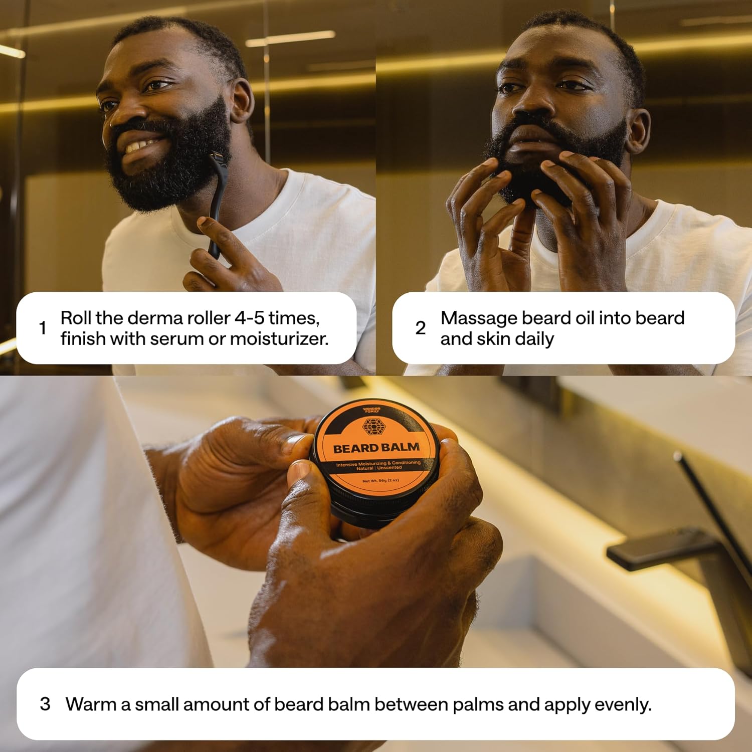 Beard Kit for Men Grooming and Care – Beard Growth Kit for Men with Beard Oil and Balm, Beard Derma Roller for Hair Growth, & Mens Comb – Mustache Kit for Men – Birthday Gifts for Men, Unscented