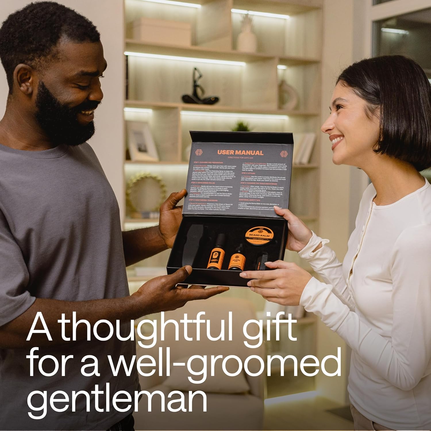 This would be a great gift set for a bearded person in your life- it includes some great products and tools in a nice package!This particular set comes with a metal mustache comb, which is probably my favorite piece from the kit, along with a derma roller for either beard growth stimulation or general skincare help. They have included an alcohol free cleaning spray, but I found the nozzle to not be the best- Iâll keep using alcohol to clean my tools.There is also beard oil and balm, both of which are unscented! There is great as scented products can cause migraines for me. The oil works well enough- it helps moisturize the skin under the beard- and the balm works quite nicely as well. It keeps the beard soft while also offering a small amount of control for flyaways and stray hairs.Bonus points to the packaging- it has a nice magnetic close box with a cut out foam interior. It looks great!Iâm impressed at this kit, and Iâd absolutely pick it up for a gift!
