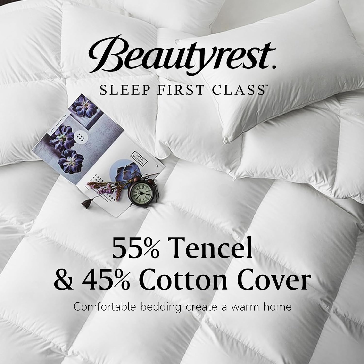 Beautyrest White Feather Down Fiber Comforter King Size, Hotel Collection Luxury Hypoallergenic Comforter,Ultra-Soft Lightweight Tencel Lyocell Cotton Blend All Seasons King Duvet Insert,106″x90″