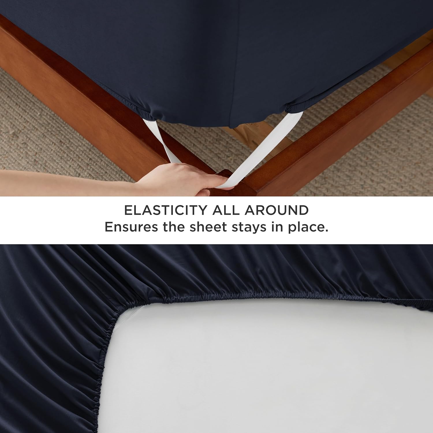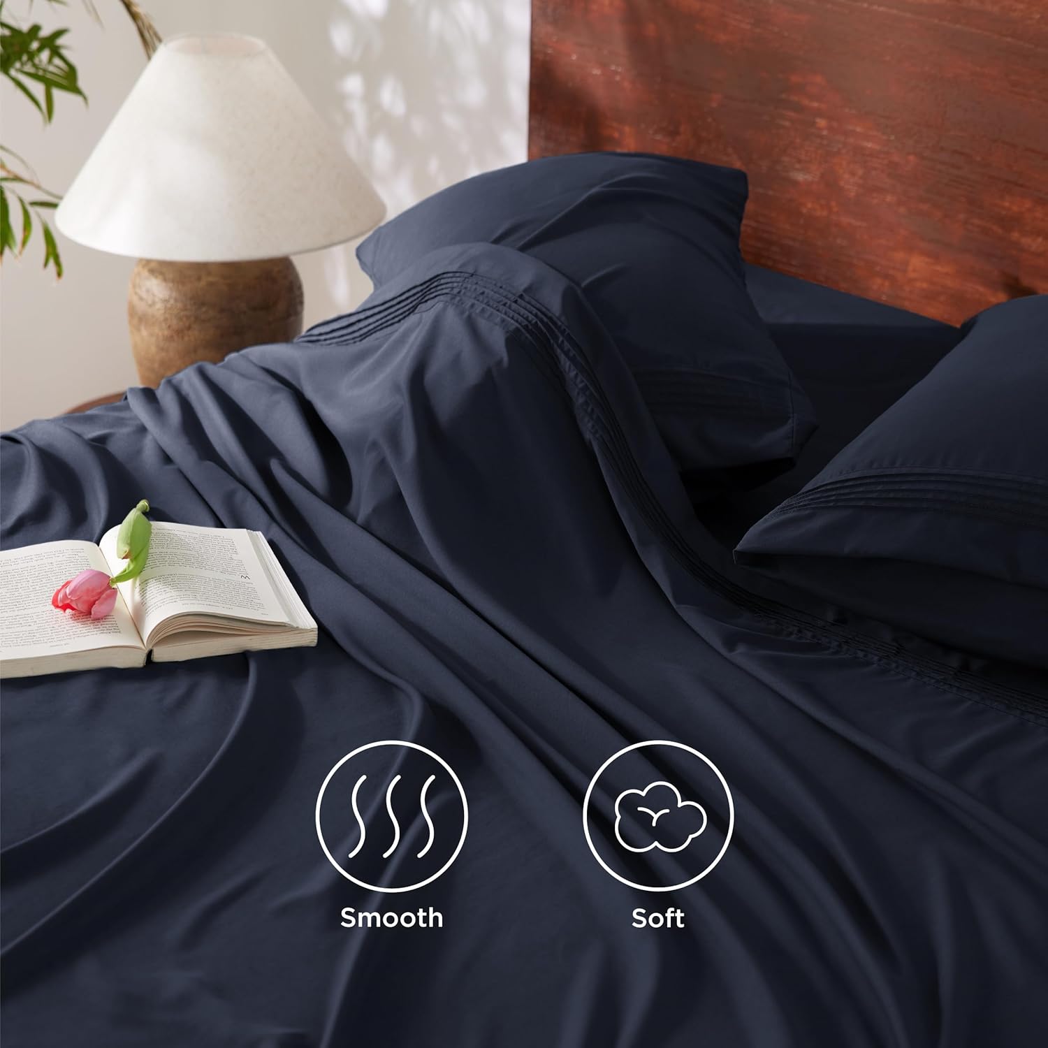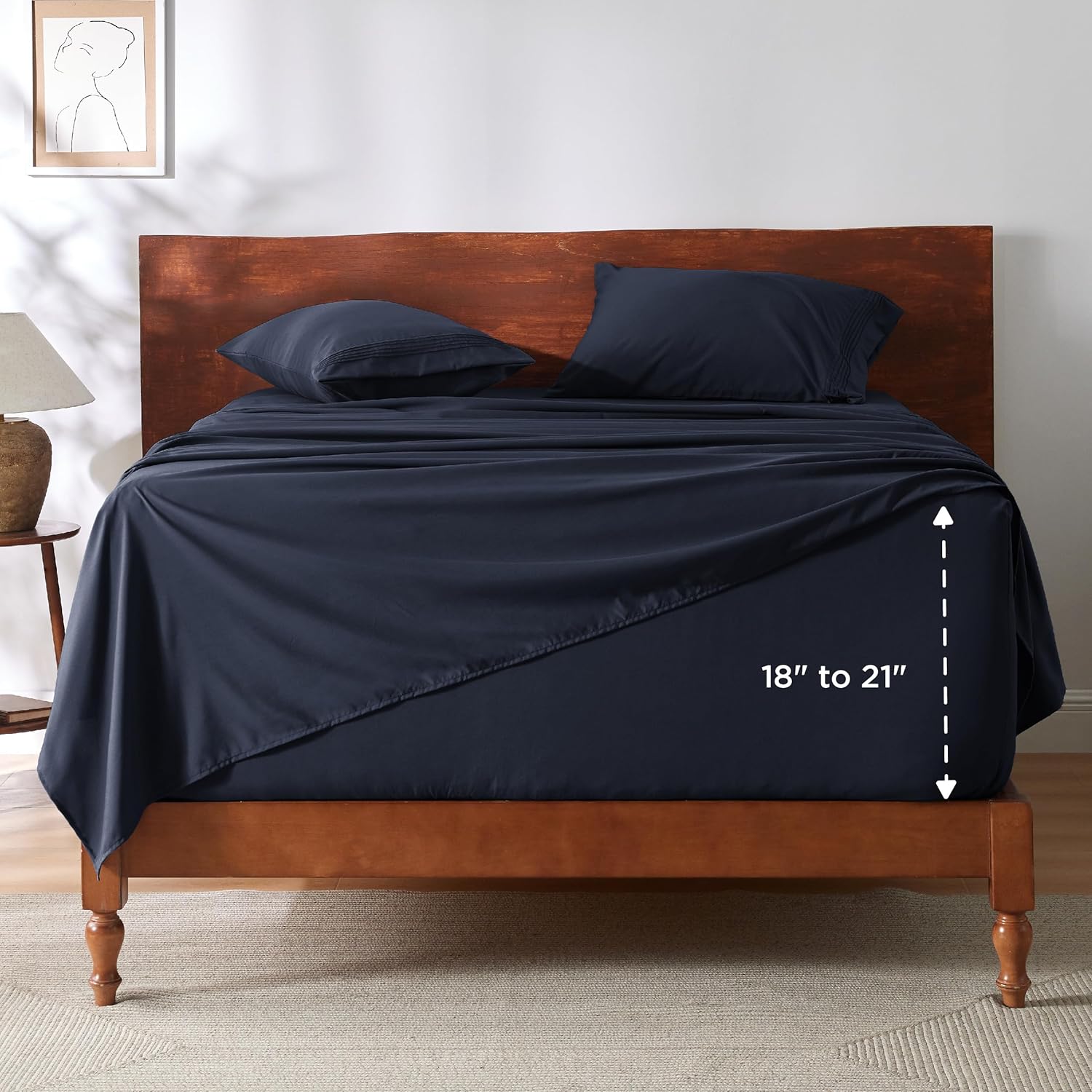 Bedsure Deep Pocket Queen Sheets Set – Fits Mattresses Up to 21″ Thick, 4 Piece Air Mattress Sheets with Deep Pocket, Moisture Wicking Soft Cooling Bedding Sheets & Pillowcases, Navy