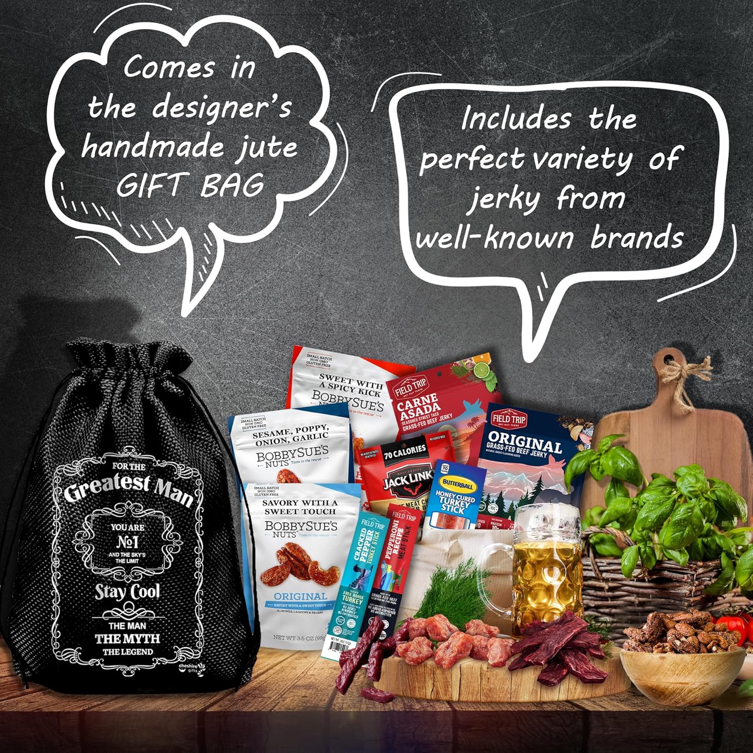 🎁BEST GIFTS FOR MEN: Includes 10 Large Meat Snacks With A Mix Of Jerky Sticks, Large Beef Jerky Packs, Beef Bars, Chicken And Traditional Jerky. This Makes It Really Cool Gifts For Men Or Just Healthy Snacks Treat For Yourself!