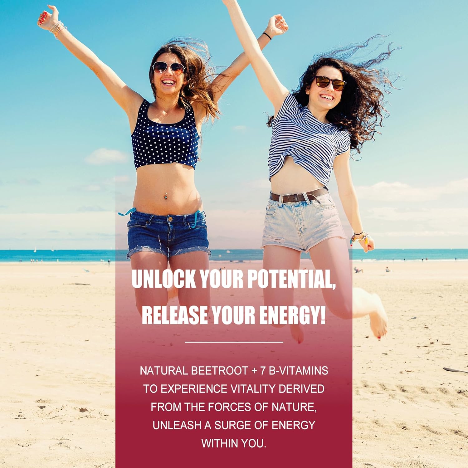 Healthy Natural Endurance & Energy Levels: Our Beet Root Gummies are a convenient and caffeine-free solution for promoting optimal circulation and supporting overall health without harsh stimulants. Come with B complex vitamins help convert carbohydrates into energy, support red blood cell production for improved oxygen transport, and reduce fatigue. This combination not only boosts physical performance but also promotes overall vitality.