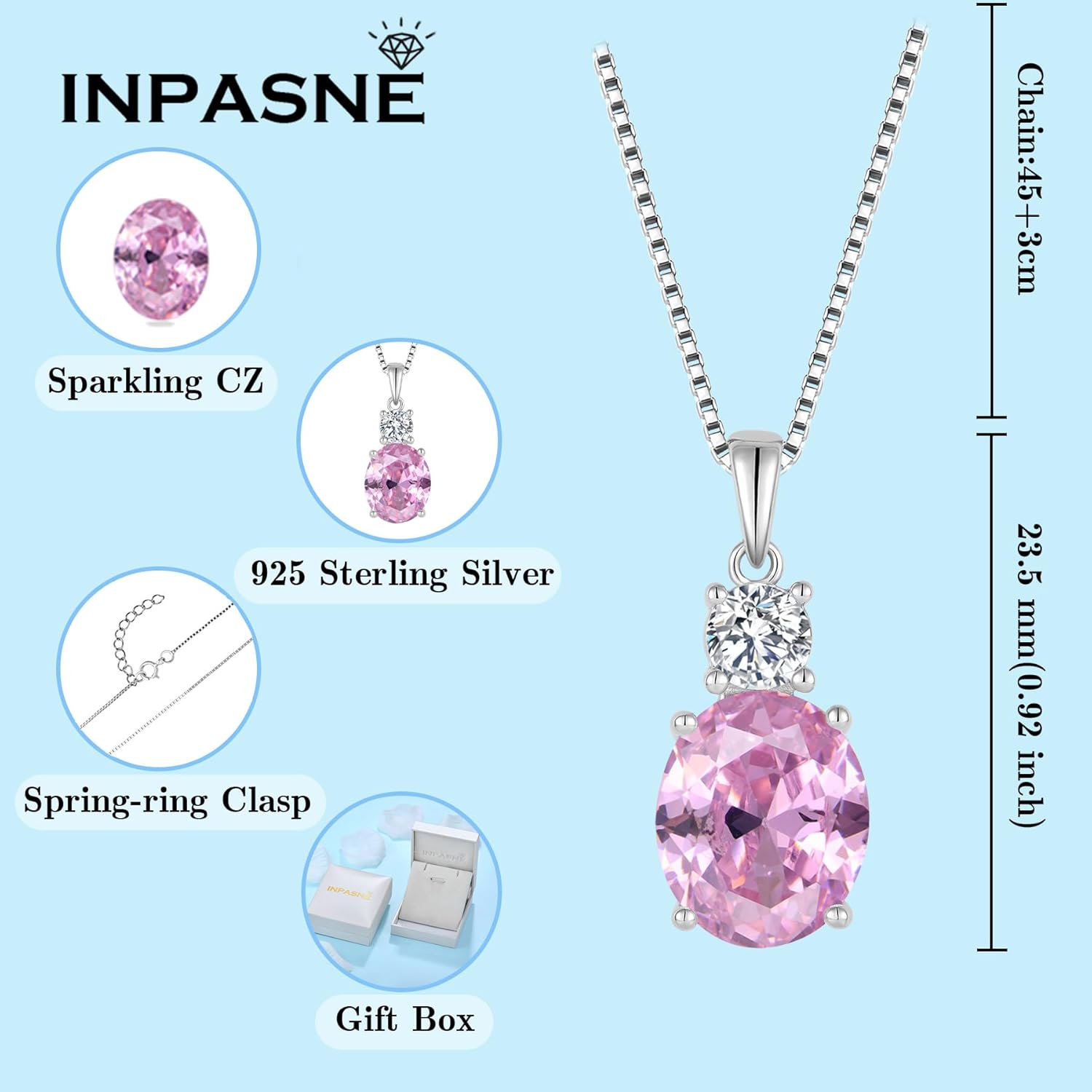 Birthstone Necklace for Women 925 Sterling Silver Oval Cut Cubic Zirconia Pendant Jewelry Gifts for Her