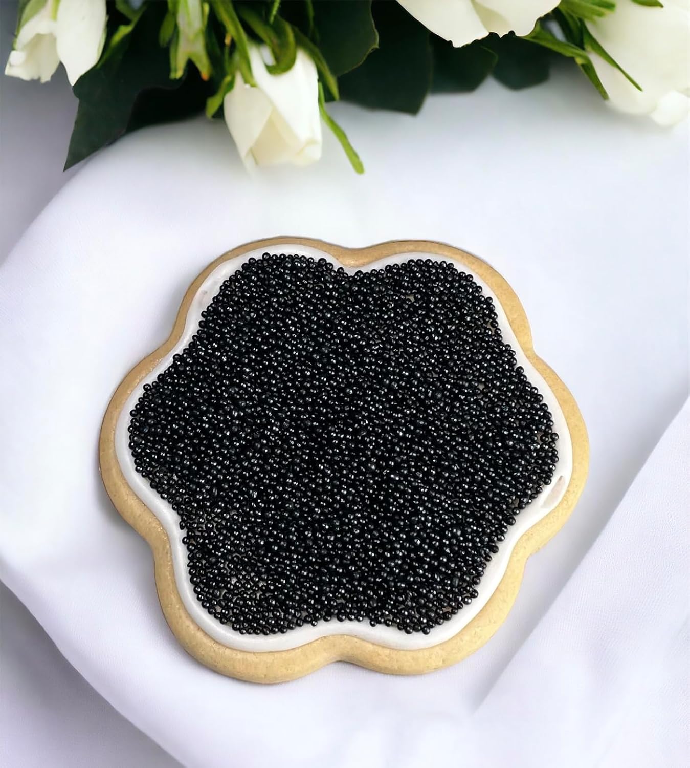 These BLACK Nonpareils – add stunning accents to your baked treats.Will look amazing on anything from cakes to cookies to donuts to ice cream.Lend some luster,shimmer, and crunch to your baked goods by topping them with these metallic pearls.