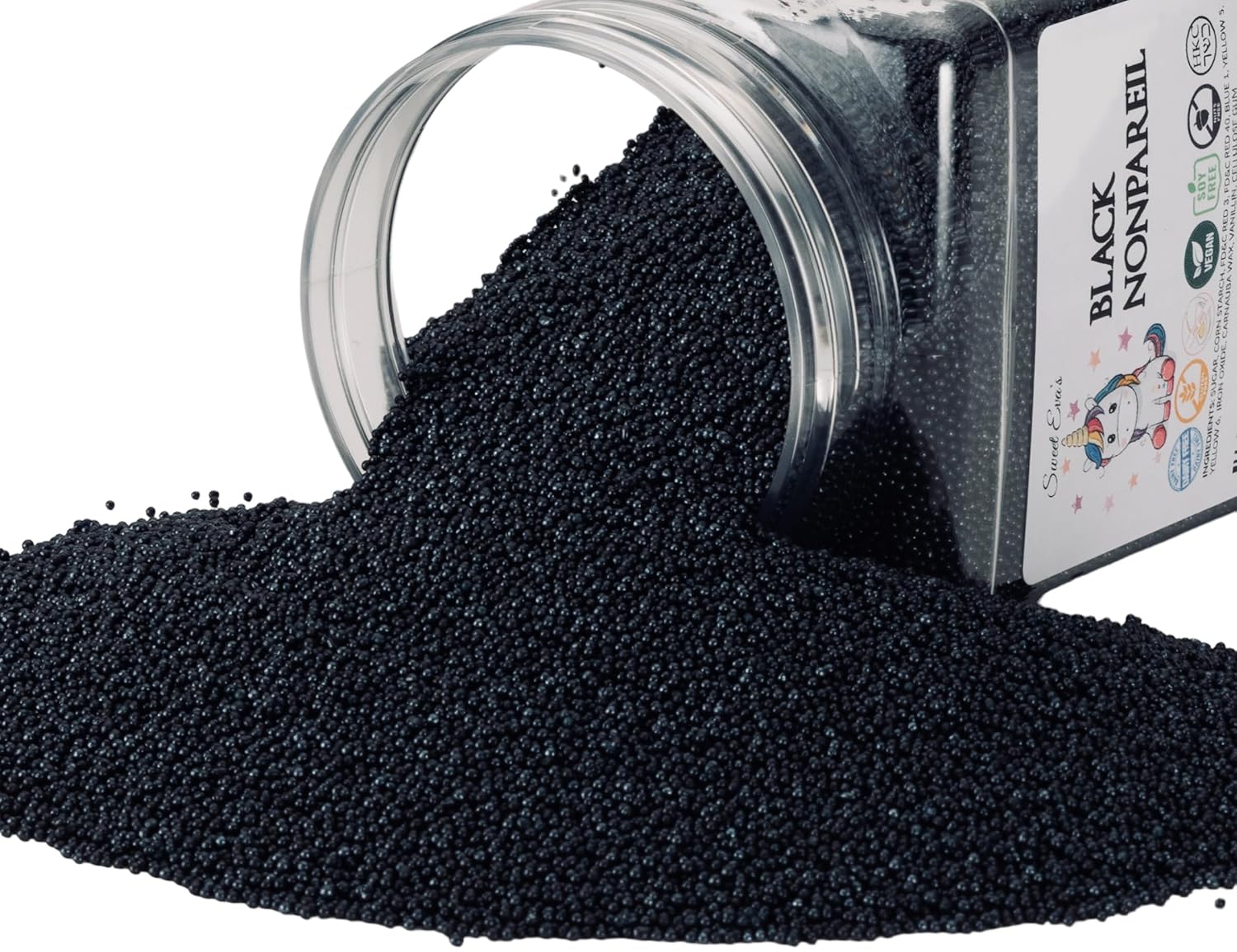 BLACK NONPAREILS- Dairy Free, Gluten Free, Egg Free, Vegan, Soy Free, Nuts Free, Kosher, Cookies, Decorating and Baking, Cake Sprinkles, Toppings, Large, Bulk Candy, Christmas