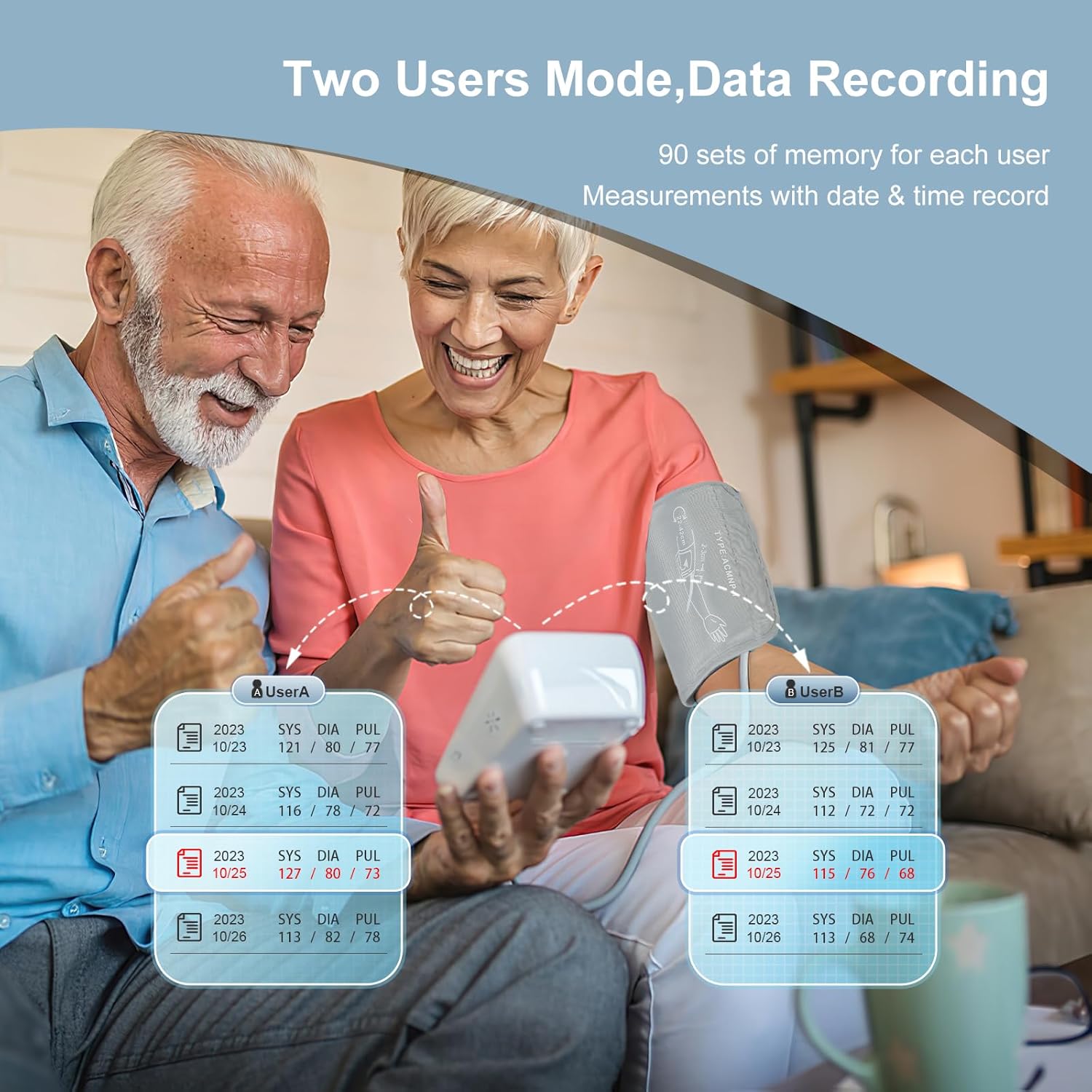 【Accurate Blood Pressure Monitor】Our blood pressure monitor is built in advanced chip for minimal error, just one push operation, you can get an accurate readings in 30s. Two users mode allow bp monitoring, tracking and storing readings separately on the same device. Convenient for monitoring your daily health.
