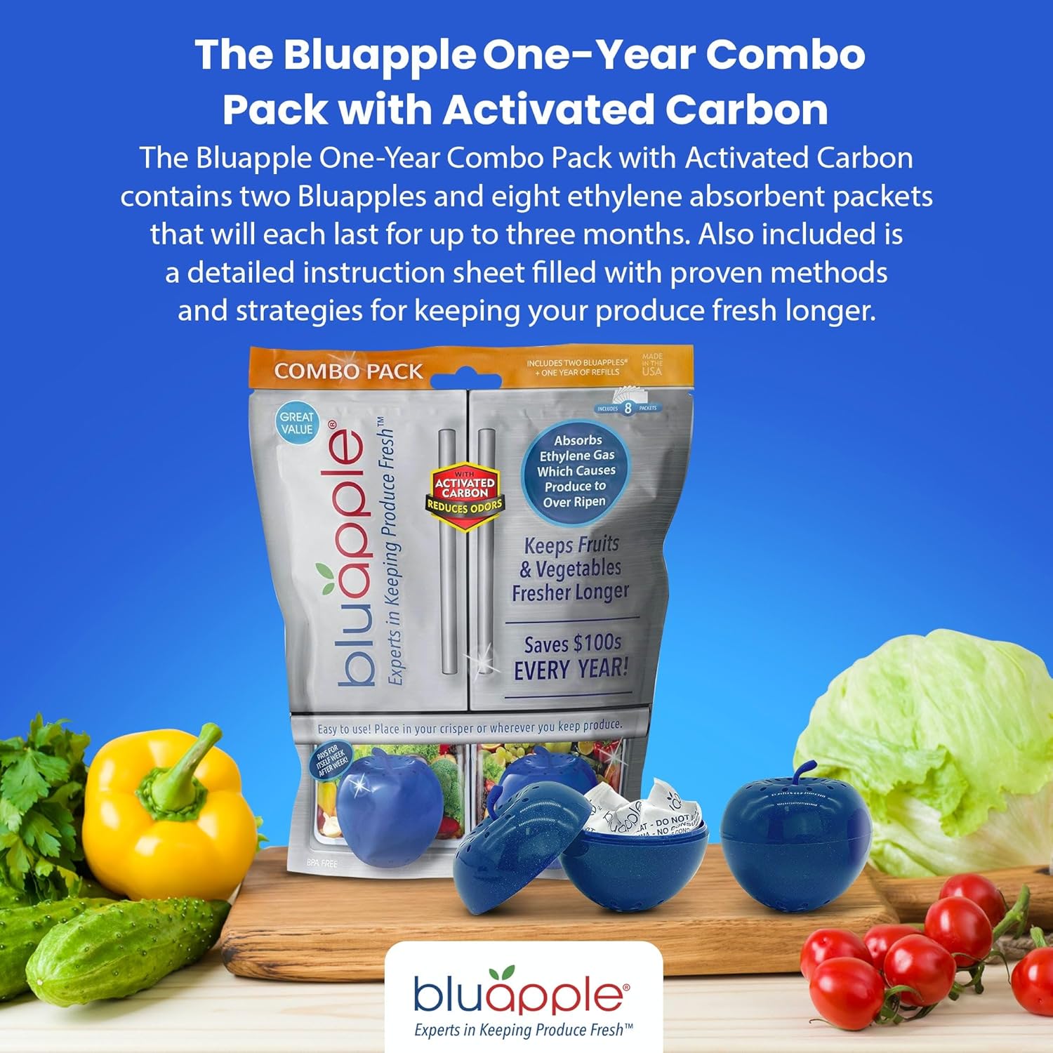 Bluapple One-Year Combo Pack w/Activated Carbon, Vegetable & Fruit Fresh Produce Saver, Ethylene