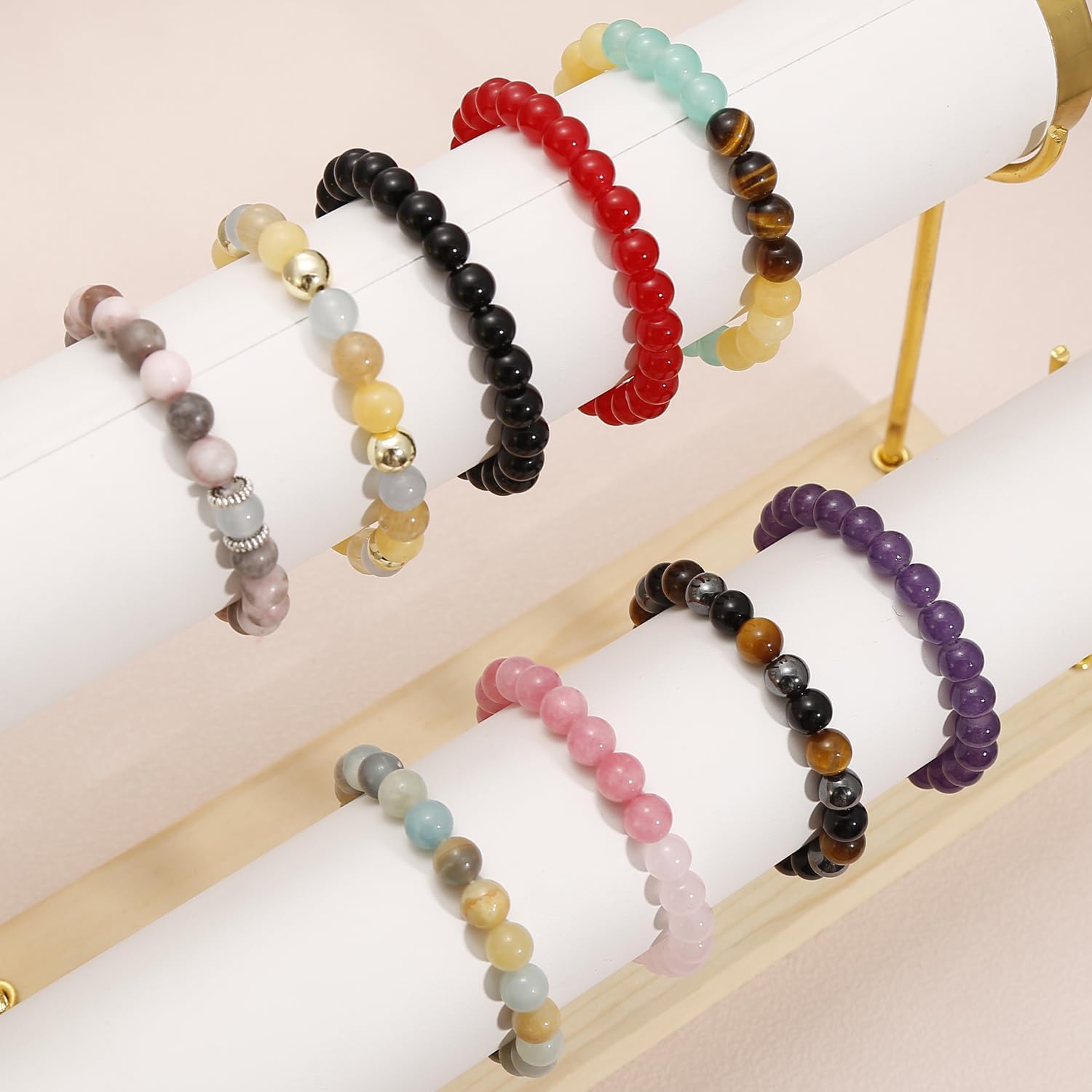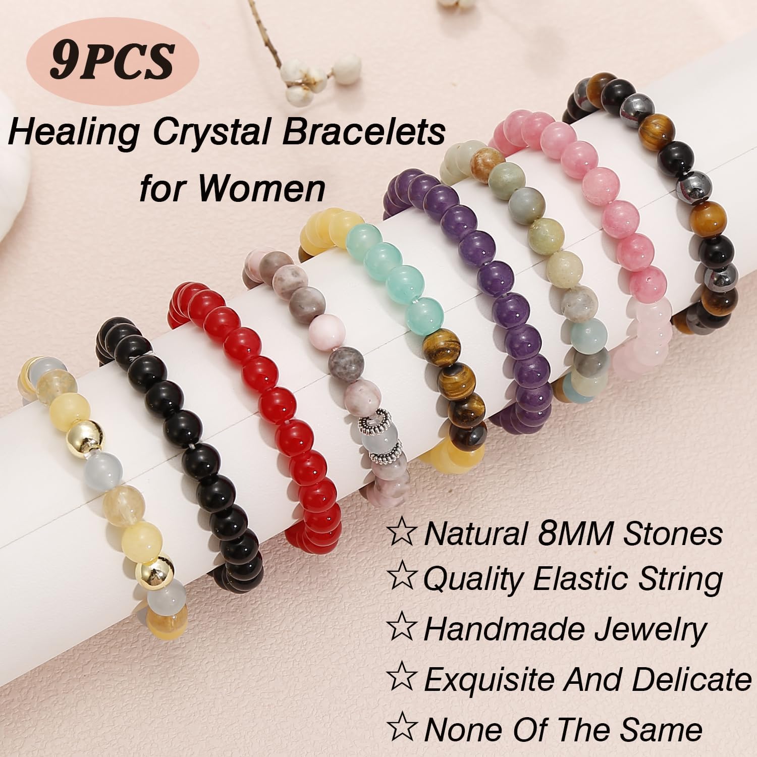 If youâre on the hunt for a unique accessory that not only enhances your outfit but also promotes well-being, look no further than the Gemstone Bracelets Set. This collection of nine beautifully crafted bead bracelets offers an excellent way to incorporate the enchanting beauty of natural gemstones into your daily style while providing the potential benefits of crystal healing.**Design and Aesthetic:**Right out of the box, the aesthetic appeal of these bracelets is striking. Each piece boasts its own unique colors and textures, showcasing the individuality of the gemstones used. Whether youâre dressing up for a special occasion or adding a touch of flair to your casual wear, these bracelets provide versatility. The variety in styles makes it easy to mix and match, ensuring that you can express your personality and elevate any outfit effortlessly.**Healing Properties:**One of the most intriguing aspects of this bracelet set is the emphasis on healing energy. Each beaded bracelet is designed to carry its own unique energy, promoting balance, healing, and grounding. As someone who enjoys exploring the potential benefits of crystals, I found this aspect to be particularly appealing. Many wearers may appreciate the comforting thought that they are not just accessorizing but also surrounding themselves with positive energies that could aid in navigating lifeâs challenges.**Comfort and Fit:**Comfort is often a concern with bracelets, especially for those with varying wrist sizes. The elastic design of these bracelets is a game-changer. They fit comfortably on wrists ranging from 6.8 to 8.5 inches, allowing for a secure yet flexible fit that doesnât feel constricting. I found that the ease of wearing and removing the bracelets added to their everyday practicalityâperfect for a busy lifestyle where convenience is key.**Perfect for Gifting:**If youâre searching for a thoughtful gift for a friend or a loved one, this bracelet set has you covered. Each piece is packaged with an energy card, making it an ideal choice for birthdays, holidays, or just because. The attention to detail in the presentation showcases your thoughtfulness, reminding the recipient of your love and care with every wear.**Customer Service:**The commitment to customer satisfaction reflected in their good service policy is commendable. The assurance that support is readily available if needed adds an extra layer of confidence when purchasing. Itâs nice to know that the brand stands behind their products and values the experiences of their customers.**Final Thoughts:**Overall, the Gemstone Bracelets Set beautifully combines style, comfort, and the potential for positive energy. With their stunning designs and the promise of healing properties, they make an excellent addition to anyoneâs jewelry collection. Whether worn for personal enjoyment or gifted to someone special, these bracelets encourage an aesthetic that is both fashionable and meaningful. I highly recommend this set for anyone looking to elevate their accessory game while enjoying the enchanting allure of natural gemstones.