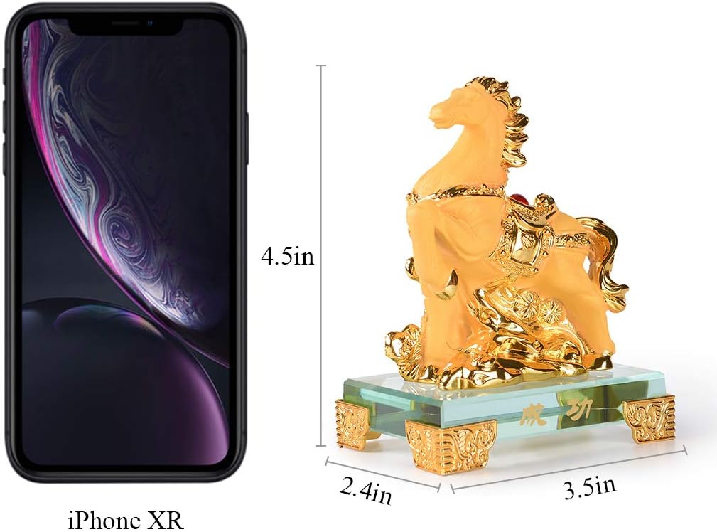 1 review for BRASSTAR Golden Resin Feng Shui Frosted Horse with Glass Base Success Statue Chinese Zodiac Home Office Table Decor Figurine Gift Collection PTZY106