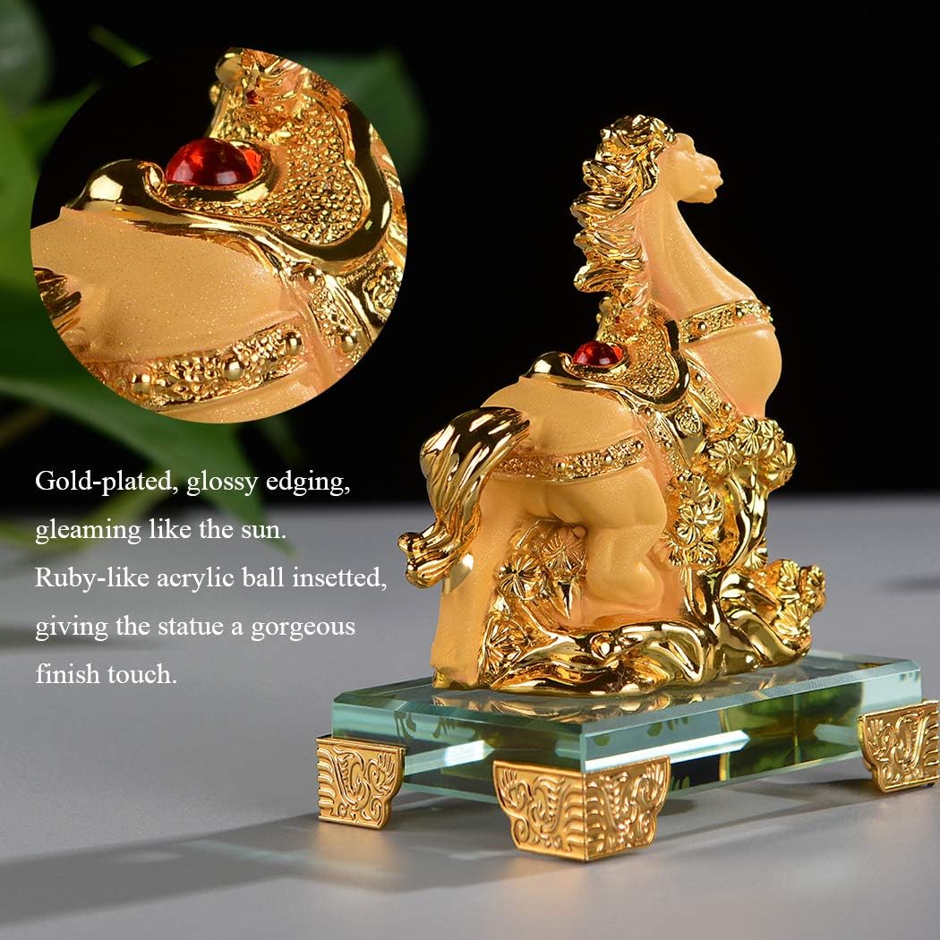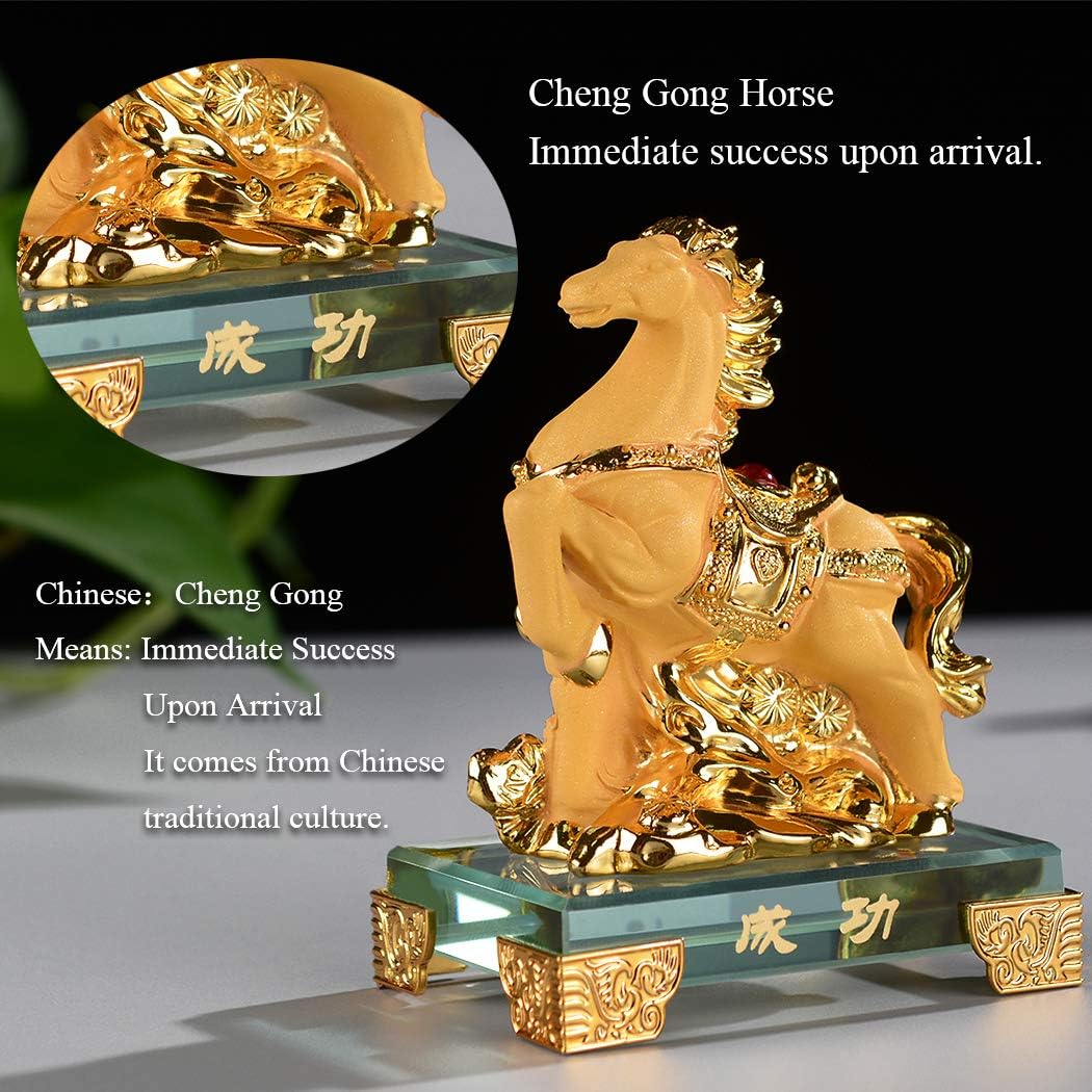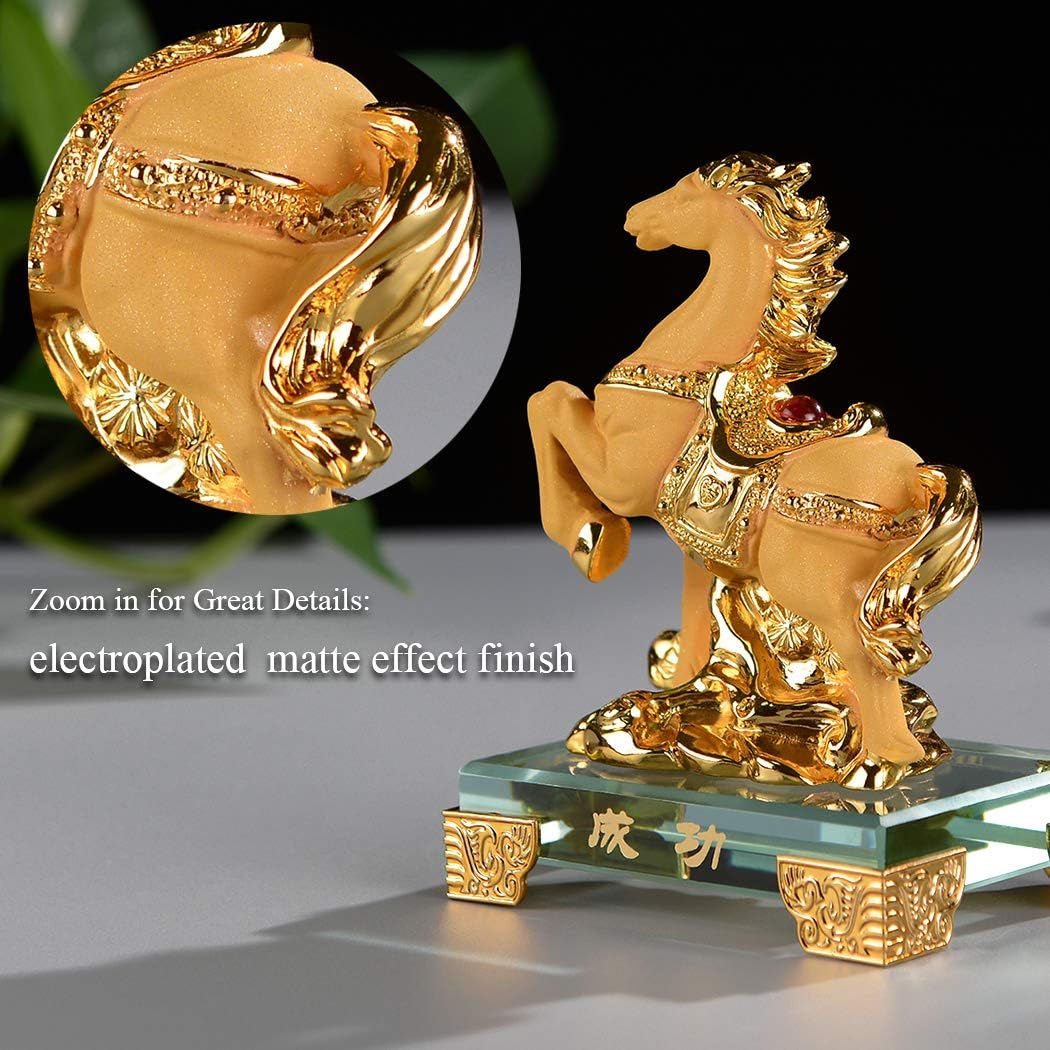 BRASSTAR Golden Resin Feng Shui Frosted Horse with Glass Base Success Statue Chinese Zodiac Home Office Table Decor Figurine Gift Collection PTZY106