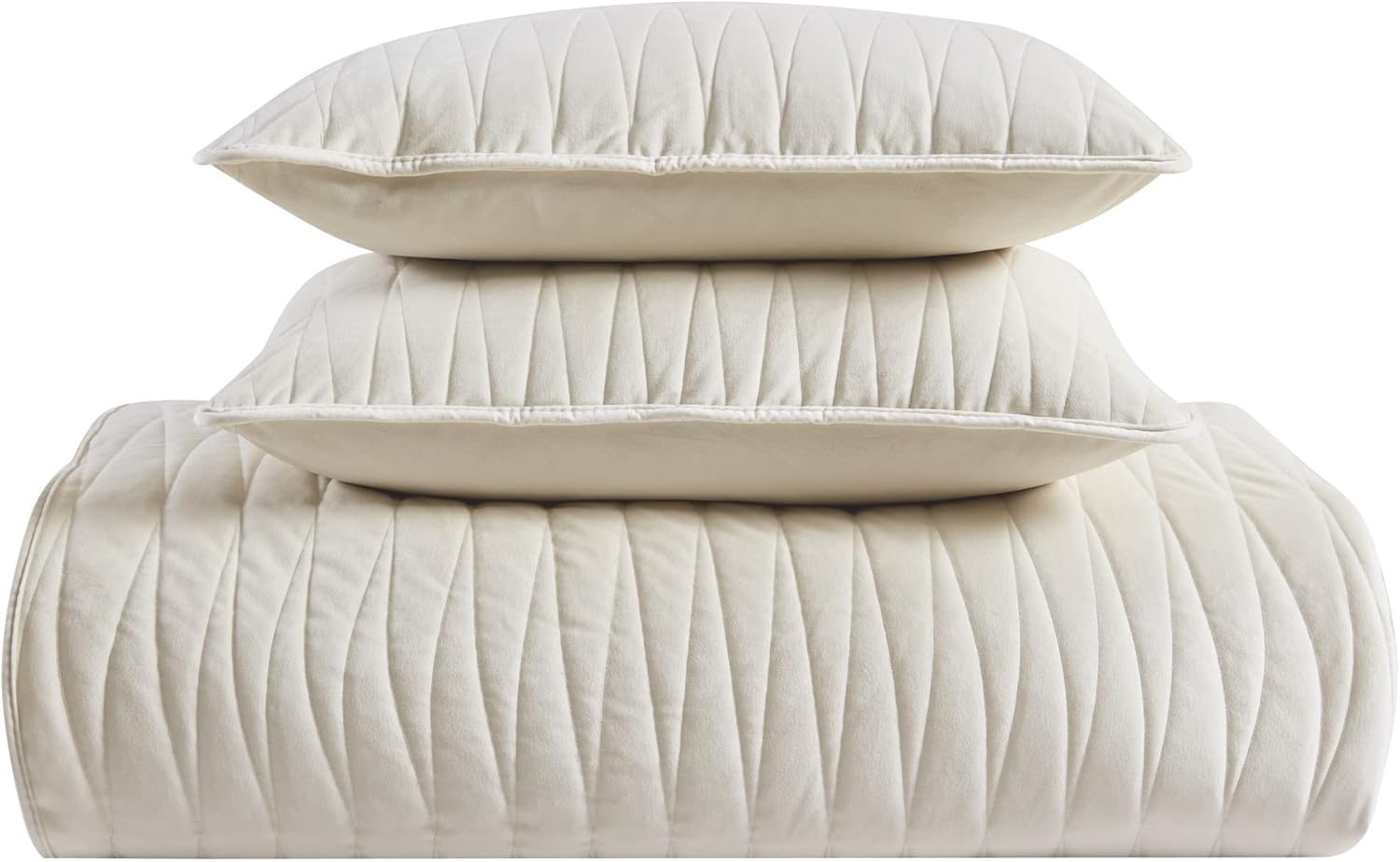 12 reviews for Brielle Home Premium Heavy Velvet Quilt Set with Cotton Backing, Full/Queen, Off White