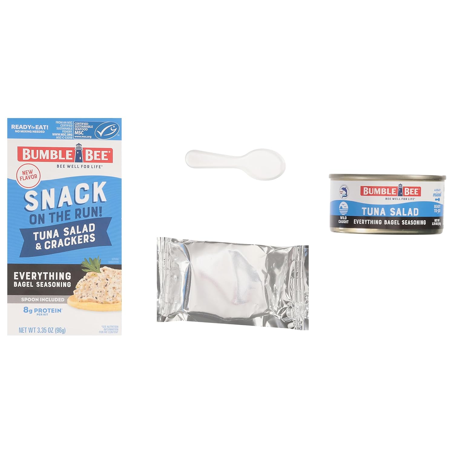 MSC CERTIFIED Tuna: Bumble Bee Everything Bagel Seasoning Tuna Salad Snack on the Run! is sourced from a Marine Stewardship Council (MSC) certified sustainable fishery and is dolphin safe and wild caught!