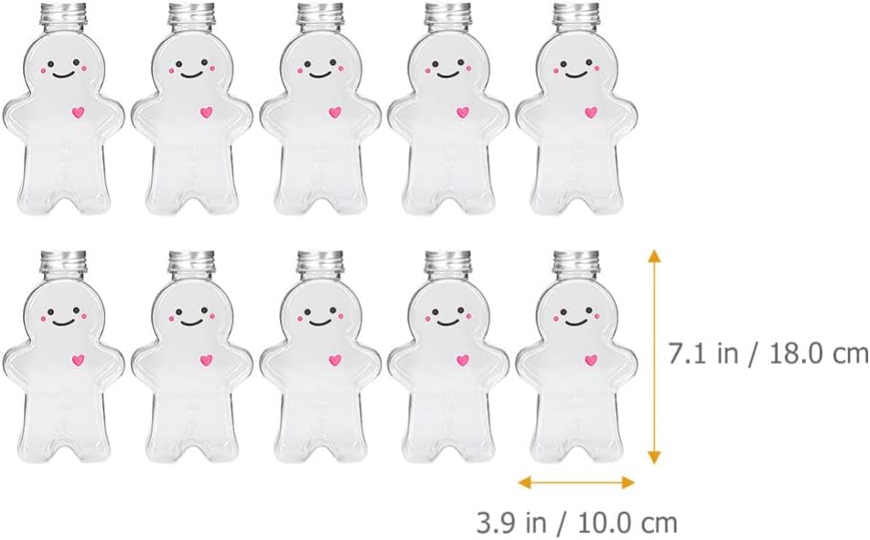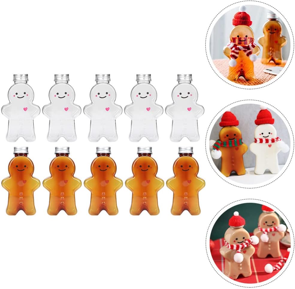 Christmas Drink Bottle Juices Bottles 10pcs Gingerbread Man Reusable Beverage Bottles Candy Jar for Xmas Party Deacorate Supplies (500ml Transparent and Brown 5 each)