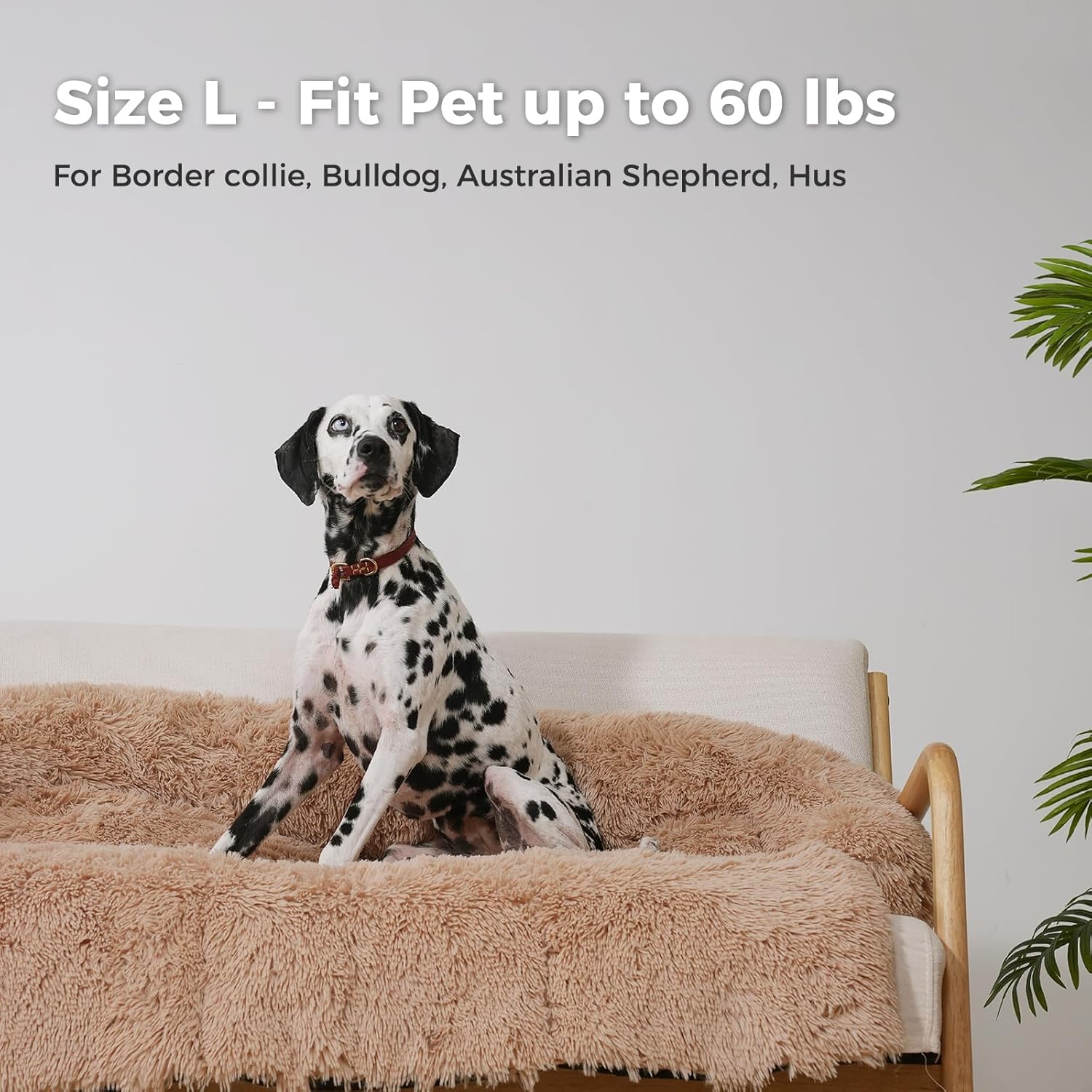 Calming Dog Bed for Large Sized Dog, Dog Couch Cover Washable- Fluffy Plush Dog Mat for Furniture Protector for Dogs Up to 100 Lbs,Beige
