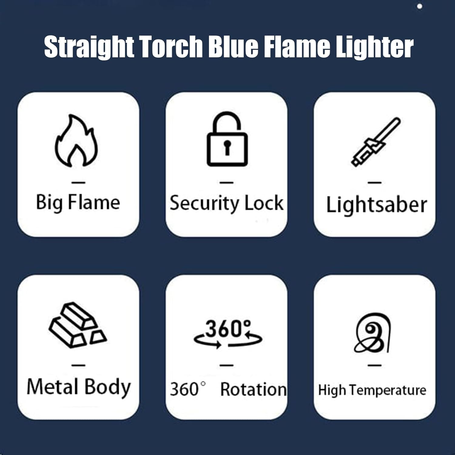 Camping Outdoor Windproof Straight Flame Lighter, Straight Torch Blue Flame Lighter, Refillable Butane Torch Lighter, Waterproof and Windproof Lighters (Silver)