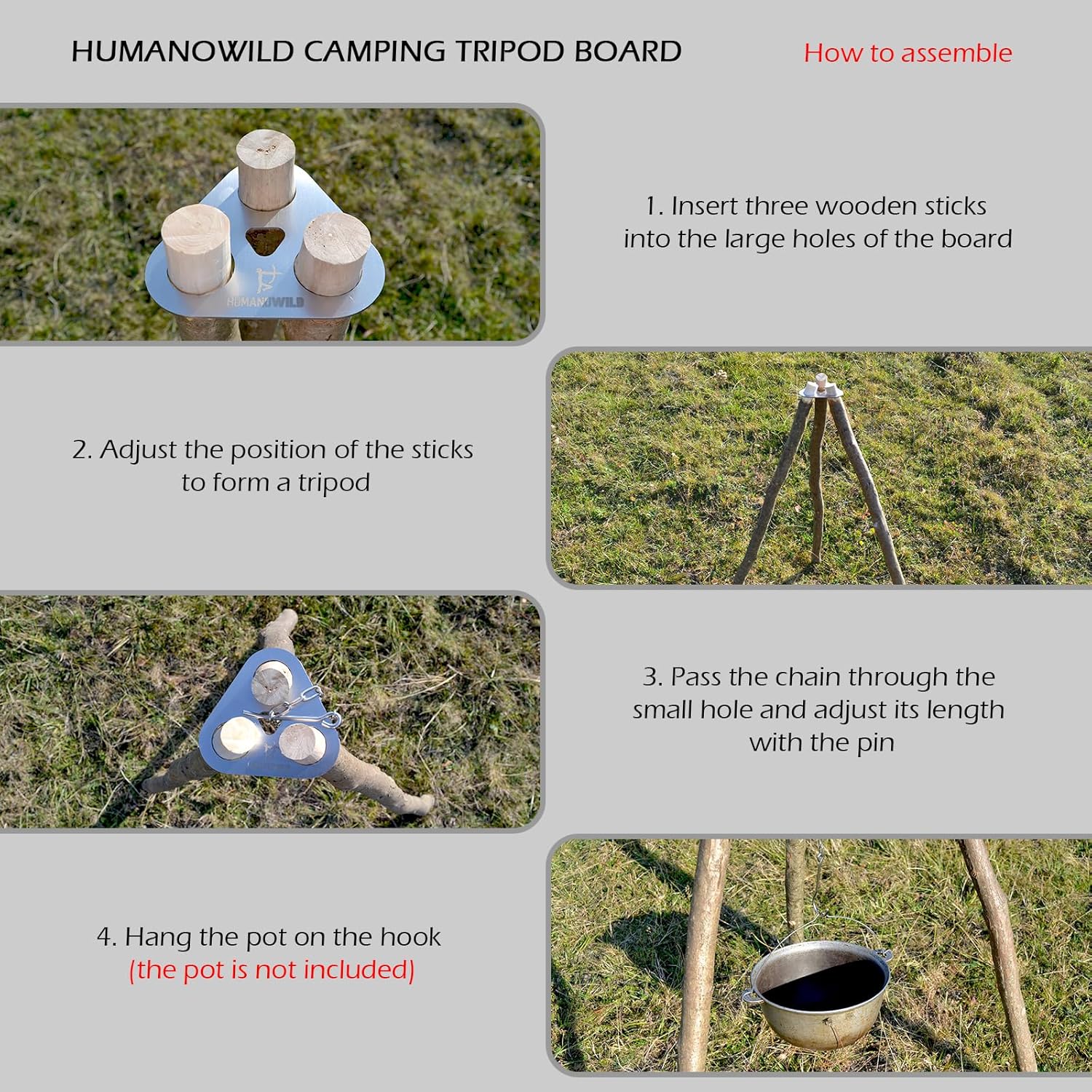 HumanoWild Camping Tripod Board – enjoy open fire cooking with amazing tools!