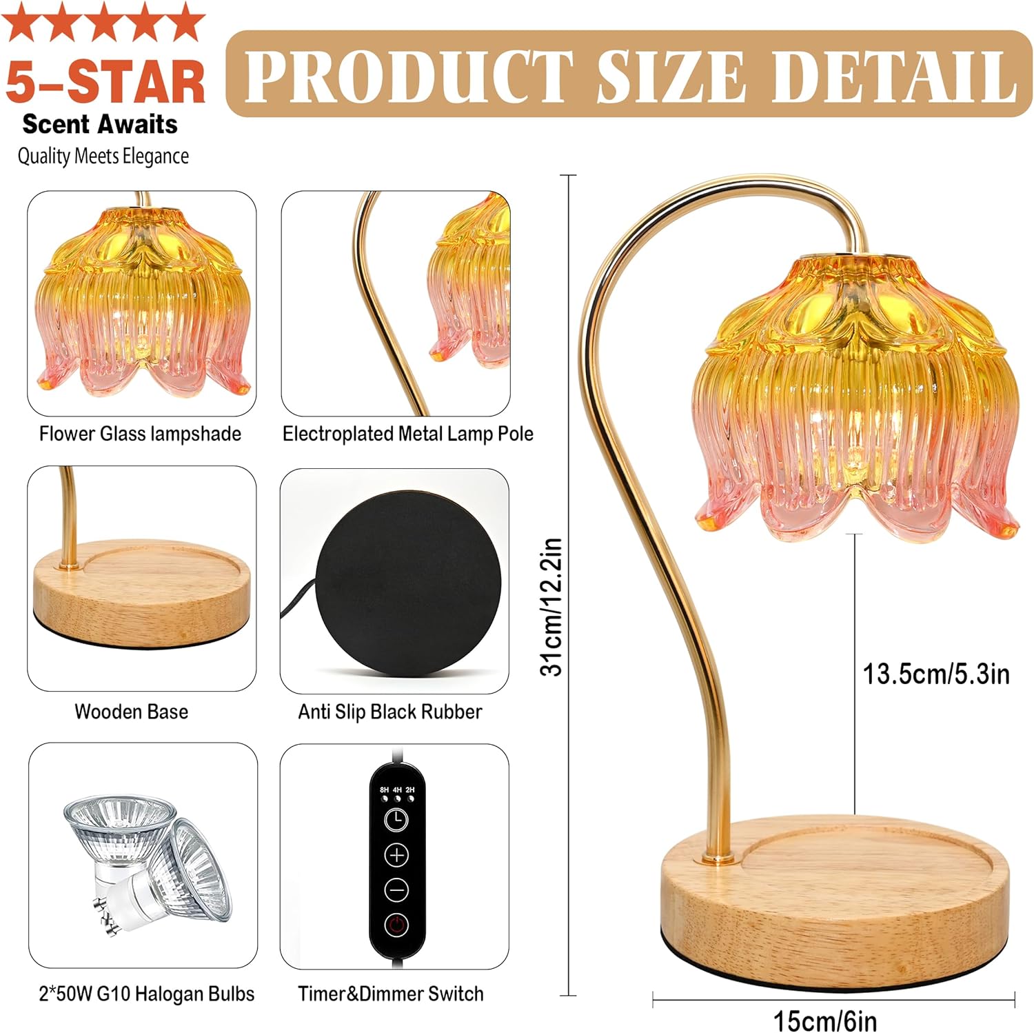 This candle warmer is so cute and pretty and it works really really well! I also love that it has a timer so that itâll turn off on itâs on after some time! Also you can change the intensity of the bulb and it also comes with two bulbs it was super easy to assemble! I would highly recommend purchasing this if you are looking for a good candle warmer
