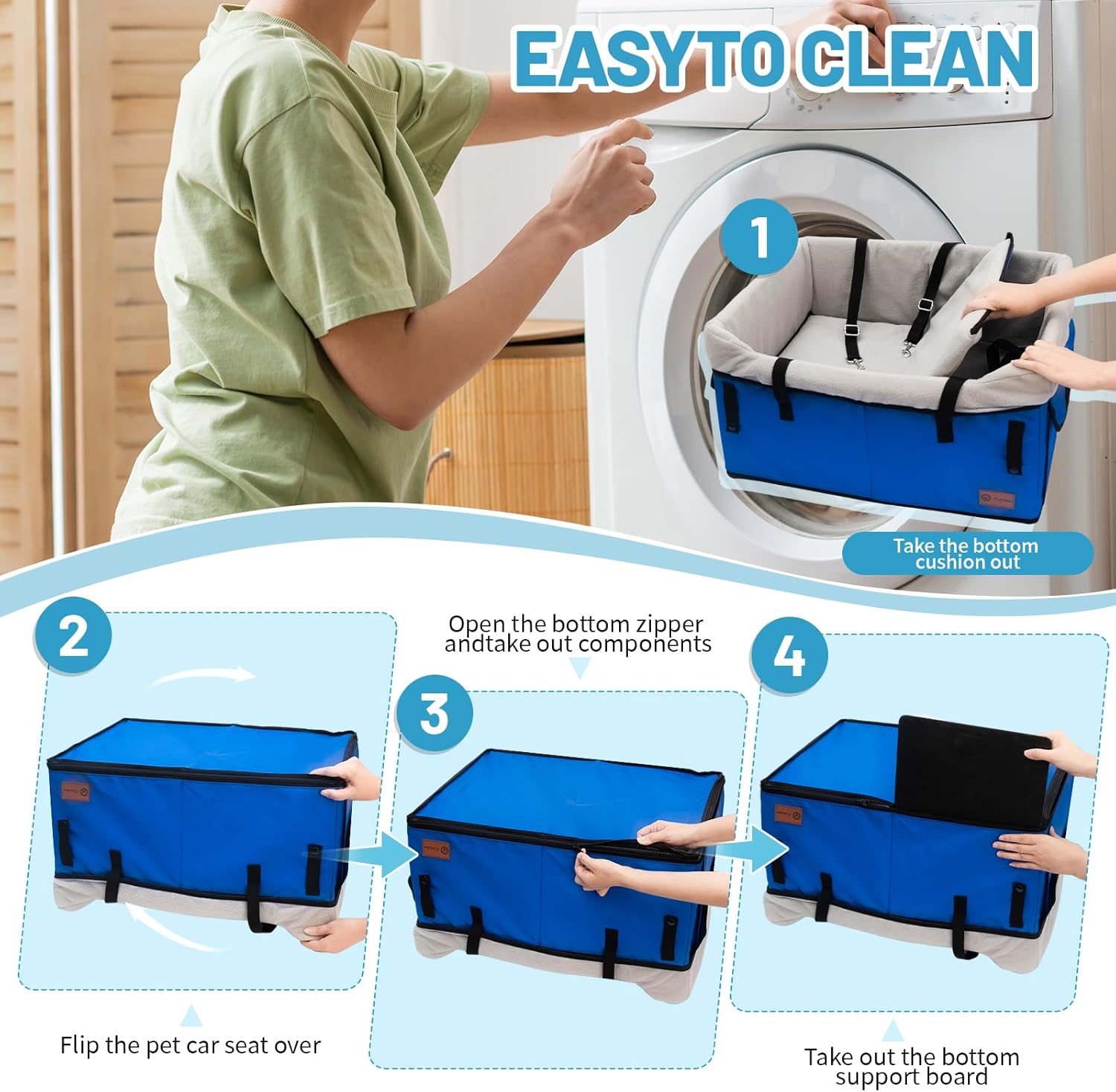 【Removable Design, Dual Use in Summer and Winter】Our dog car seat takes into account the needs of traveling with pets in different seasons and is specially designed for two ways of use, the breathable and cooler model is used in the hot summer, and the insulated model can be used in the cold winter. The removable and machine washable lining can be machine washed directly to keep the seat clean.