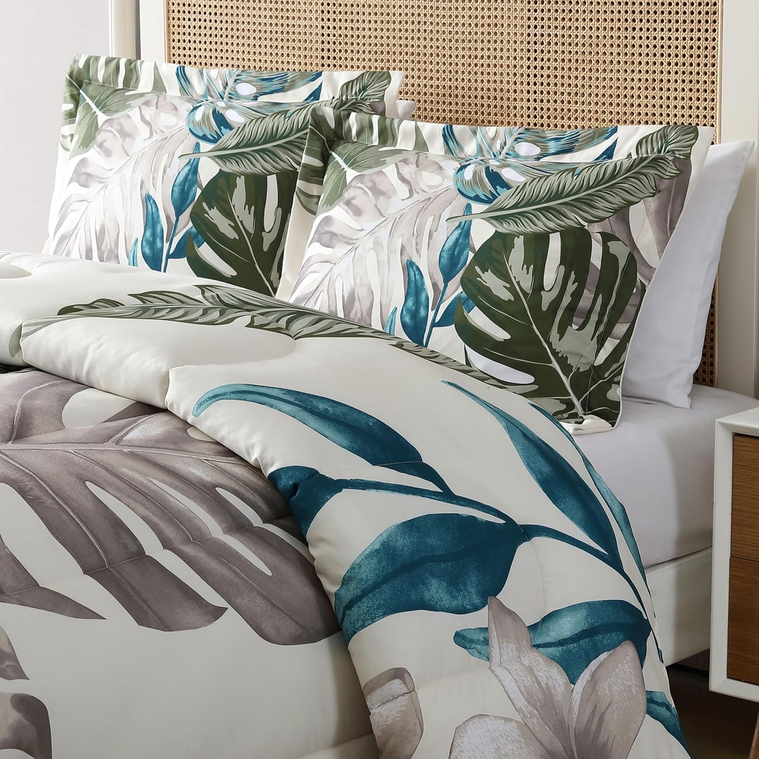 CARIBBEAN JOE King 3-Piece Comforter Set, Tropical Coastal Beach Design Bedding, Palm Leaves