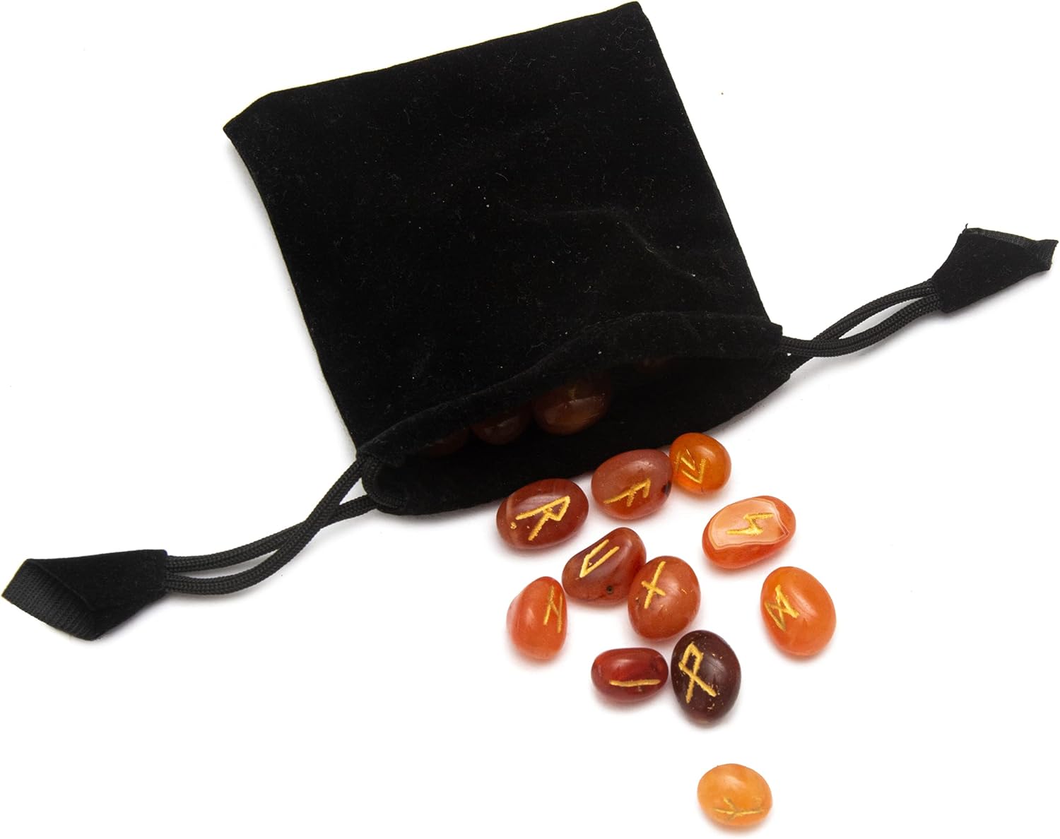 Carnelian Runes Stone Set with Velvet Pouch, Elder Futhark Viking Engraved Divination Runic Alphabets Symbols for Reiki Witches & Energy Balancing