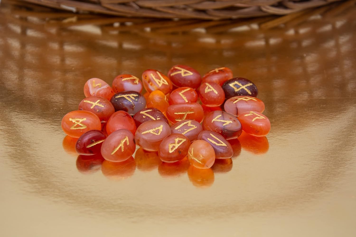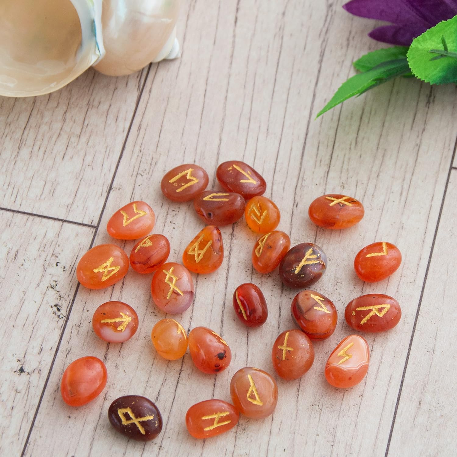 6 reviews for Carnelian Runes Stone Set with Velvet Pouch, Elder Futhark Viking Engraved Divination Runic Alphabets Symbols for Reiki Witches & Energy Balancing
