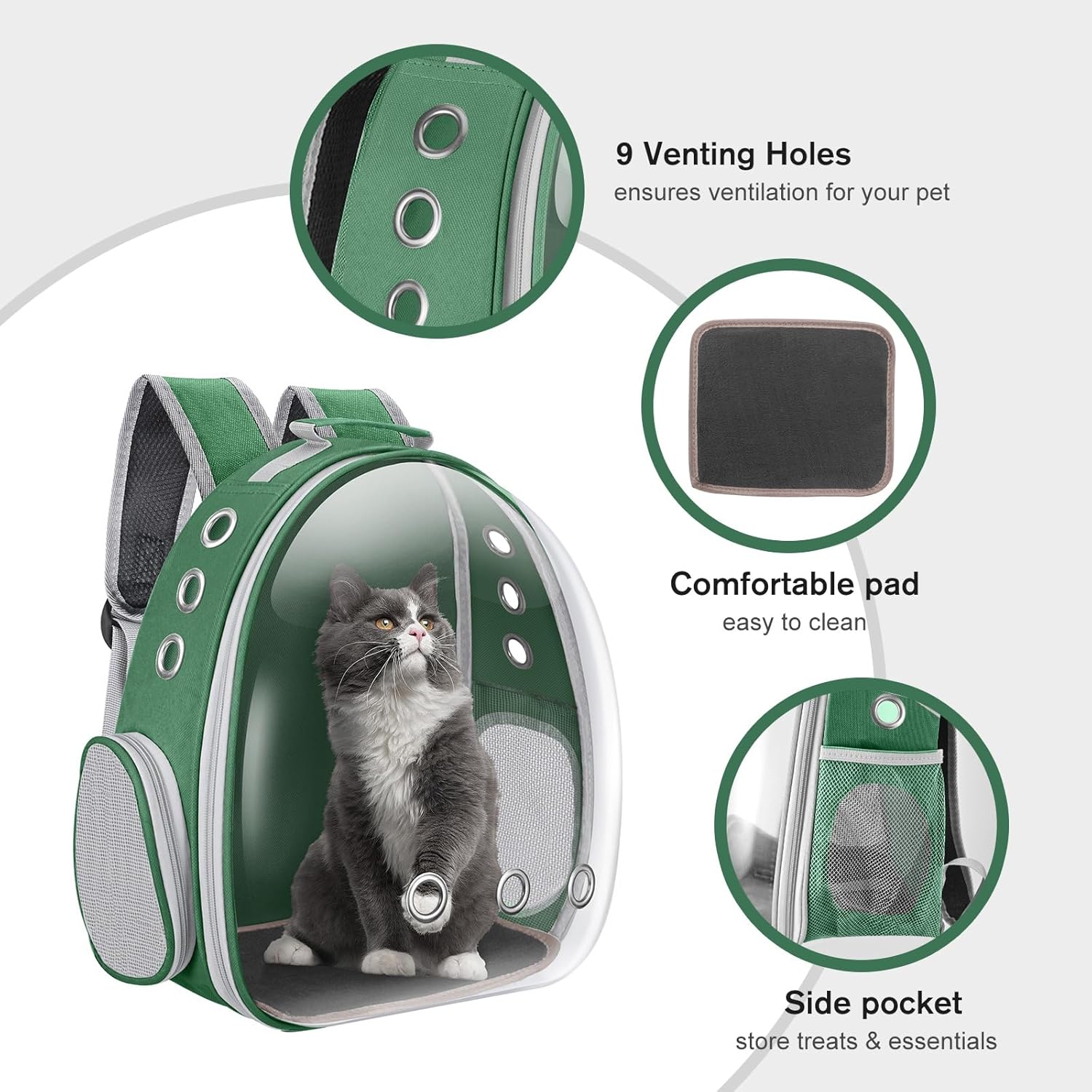 Cat Carrier Backpack Portable Pet Travel Solution Pet Carrier Dog Carrier Backpack Bag Space Capsule for Small Medium Cat Puppy Dog Travel Hiking Walking Camping Up to 17Lb (Green)