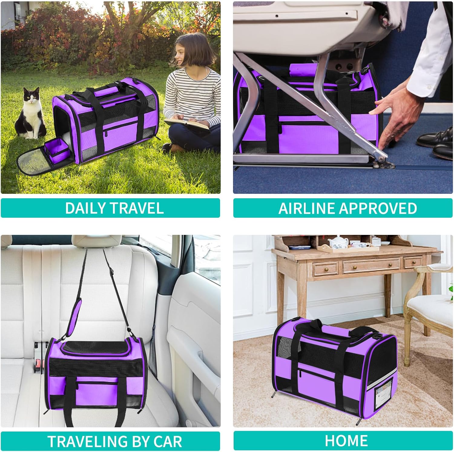 Cat Carrier Dog Carriers Airline Approved Pet Carrier for Small Dogs Cats Under 15 Lbs, Collapsible Soft Sided Travel Carriers for Puppy Kitten, Purple