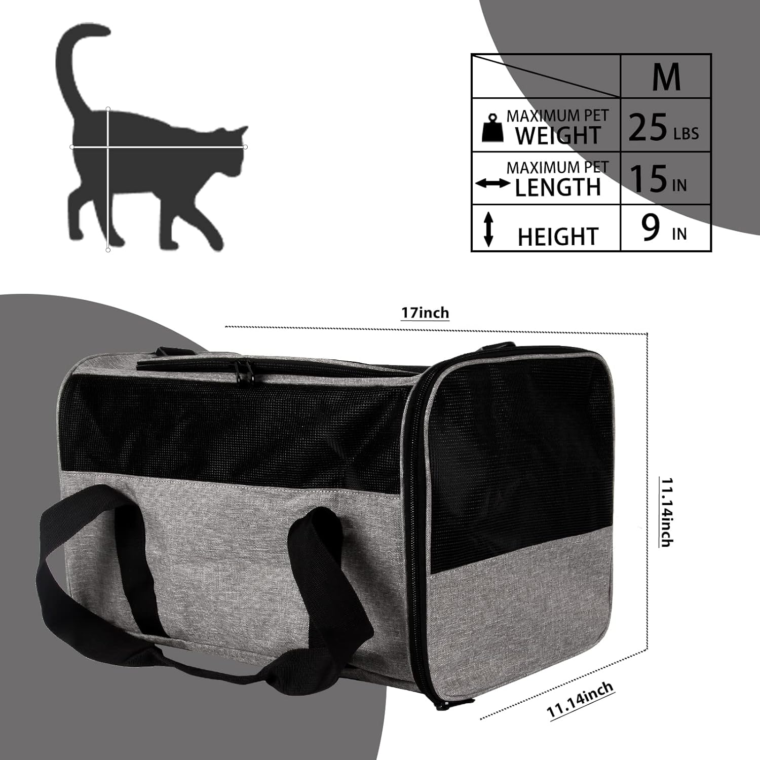 COMFY FIT – Cat carrier is spacious fit for small and medium pets within 17″ x 11″ x 11″(smaller than product) and 15lbs.Please do not choose your carrier only based on weight. Reference your pets’ length and height in selecting a carrier size.