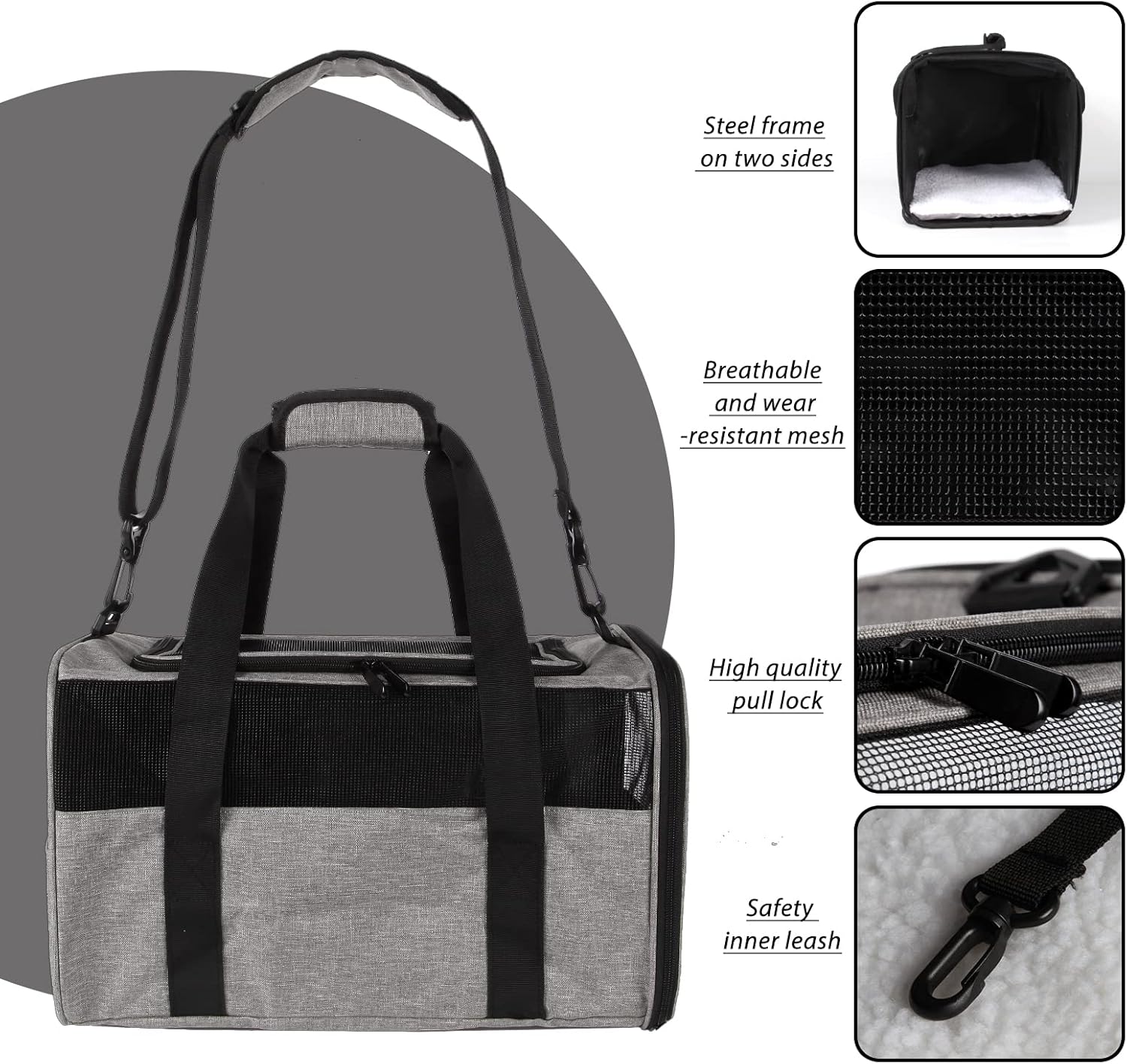 SAFETY DESIGN – The adjustable shoulder strap help you hands-free carrying and makes it more safe and convenient pet carrier bag for your travel