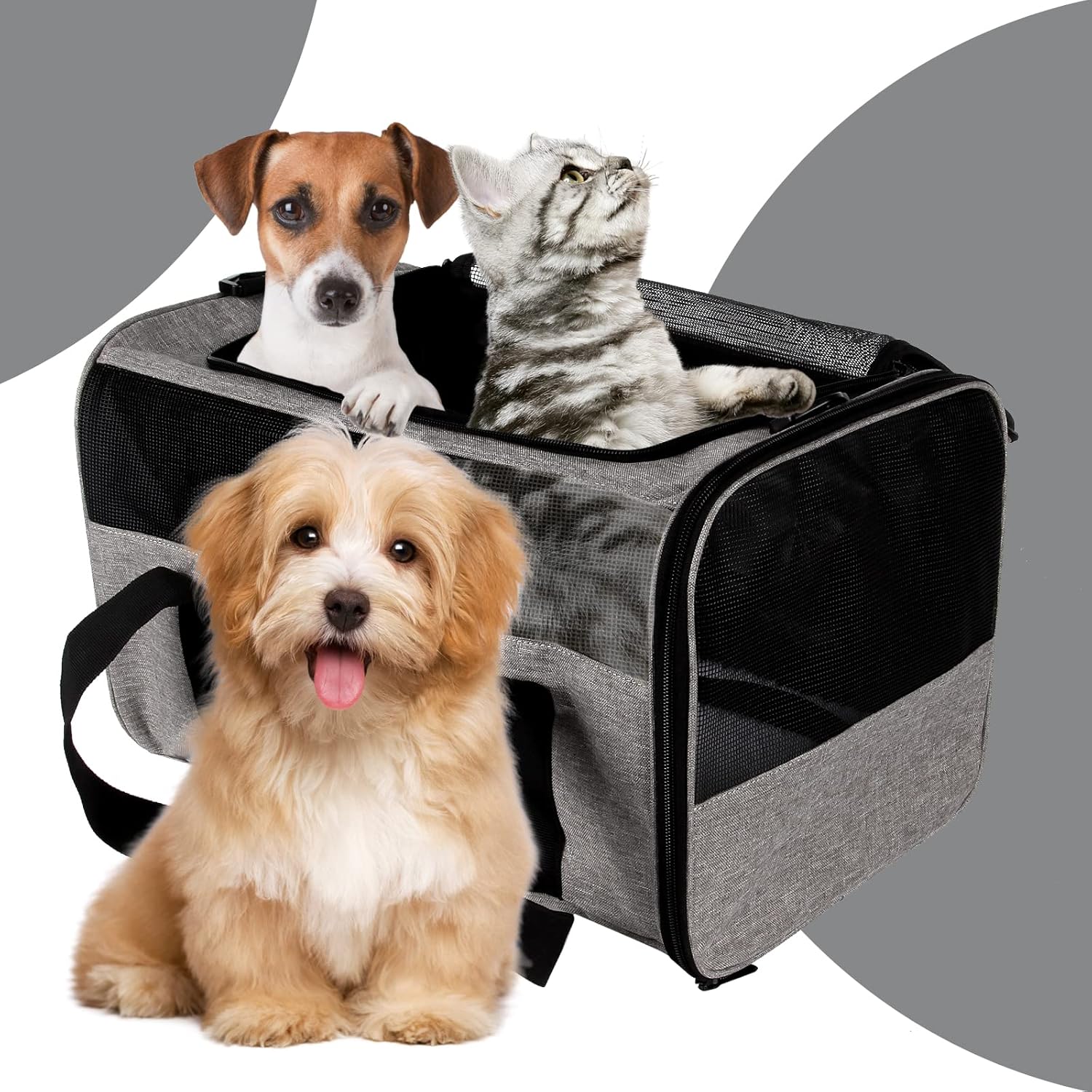 Cat Carriers Dog Carrier Pet Carrier for Small Cats Dogs Puppies Under 15Lbs,Top Load Carrier Soft Sided,Collapsible Travel Puppy Carrier (Medium, Grey&Black)