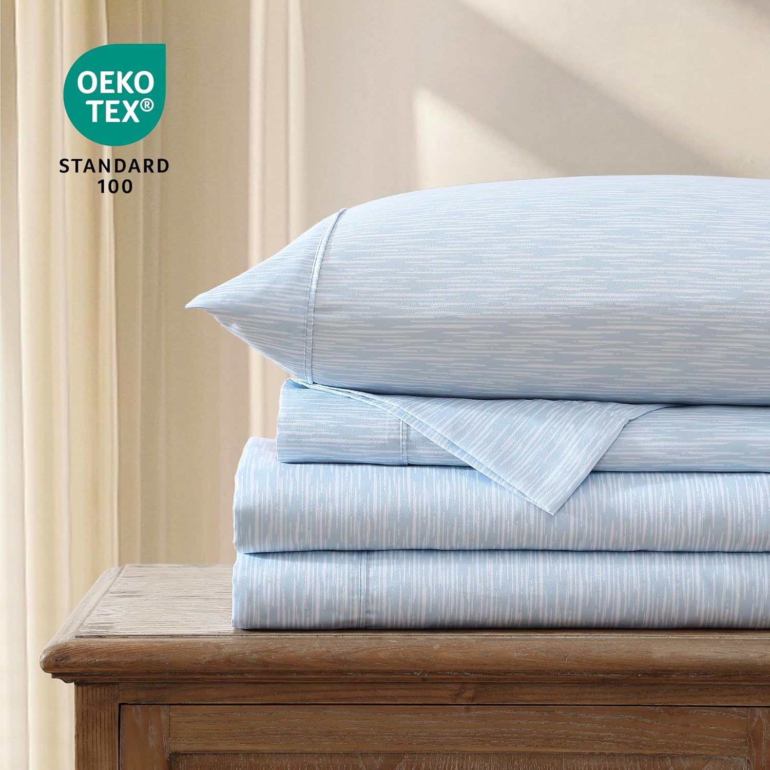 Cathay Home Sancturary Ultra-Soft Hypoallergenic Wrinkle Resistant Double-Brushed Microfiber Printed 4-Piece Bedding Sheet Set – Light Blue, King