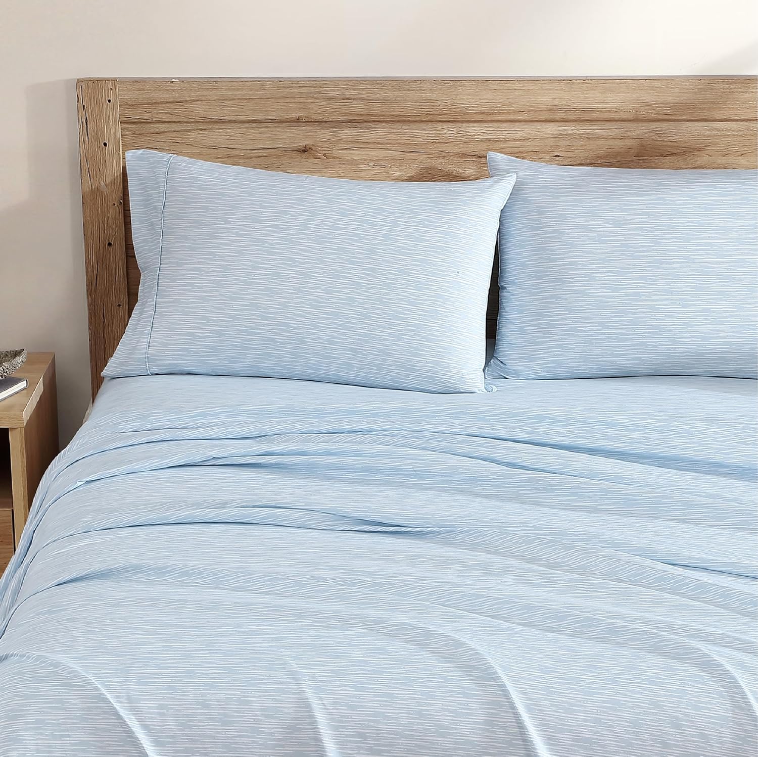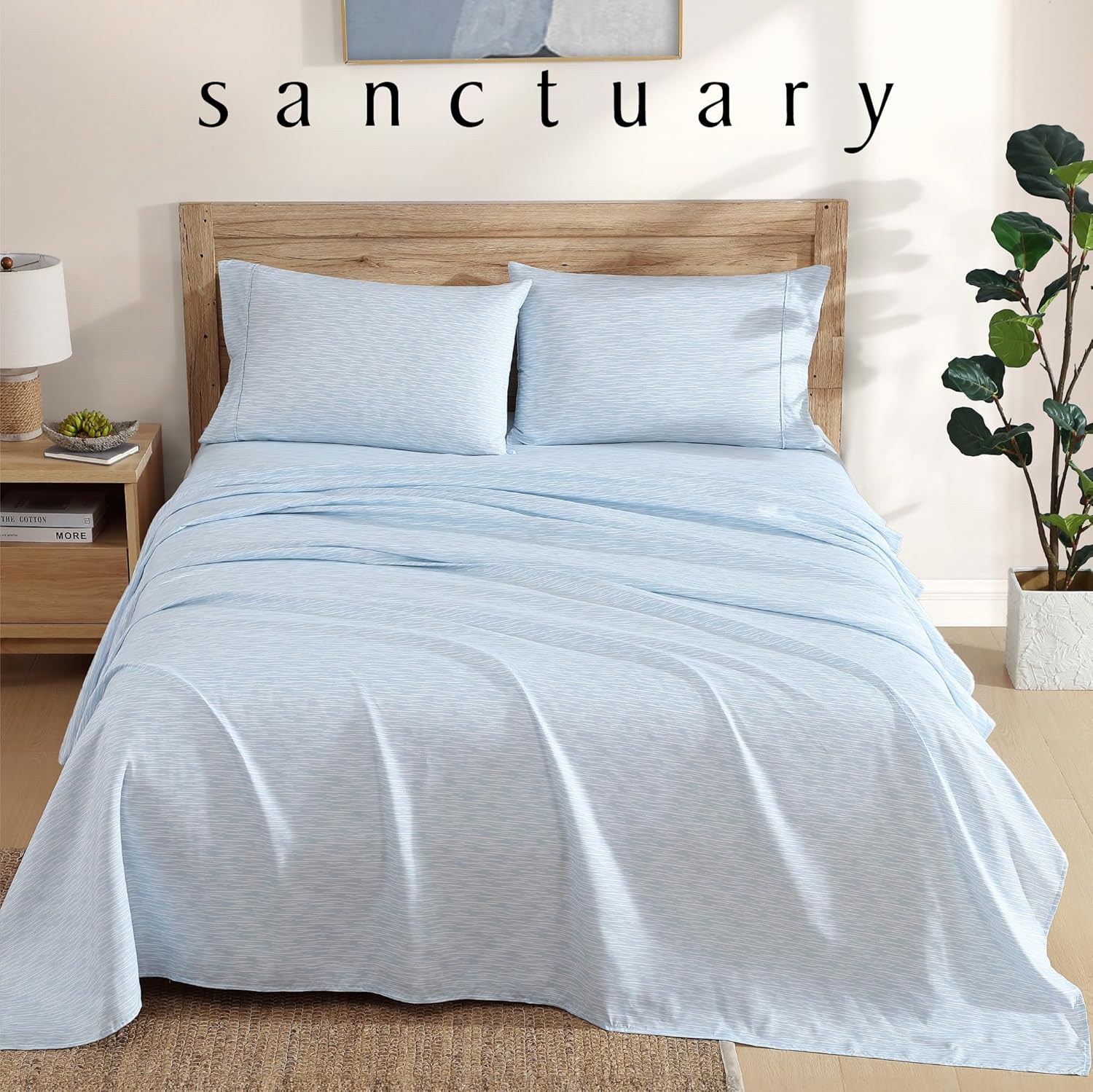 This is a collection of sheet sets by Sancturary that features nature-inspired colors and prints. The sheets are crafted from high-quality polyester and double-brushed to create its signature fuzzy and soft microfiber surface. This ensemble includes a fitted sheet, flat sheet, and pillowcases (1 in Twin).