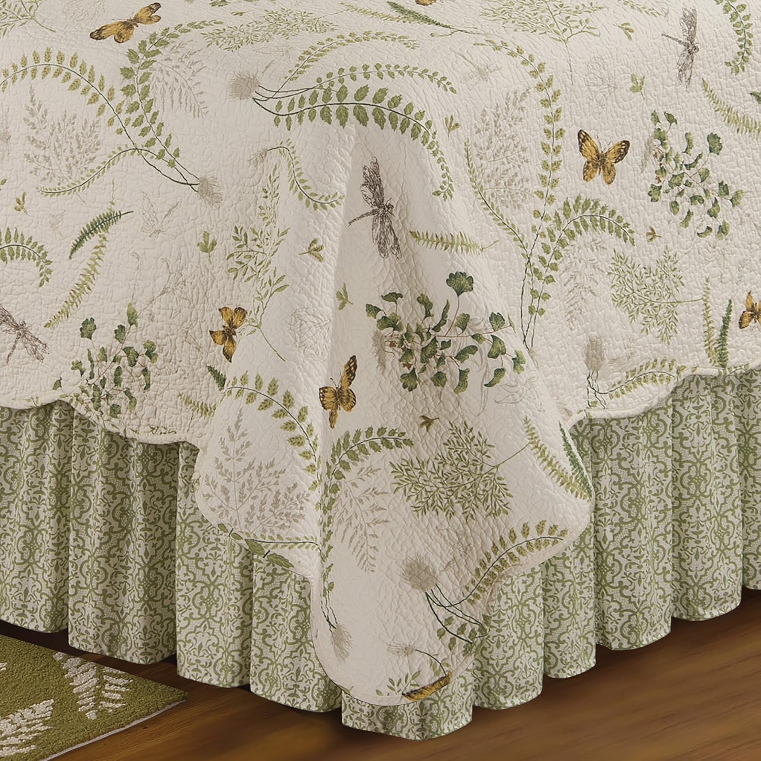 UNIQUE DESIGN: Butterflies flutter in a nature inspired pattern of garden botanicals. Luxury oversized, prewashed, cotton filled quilt