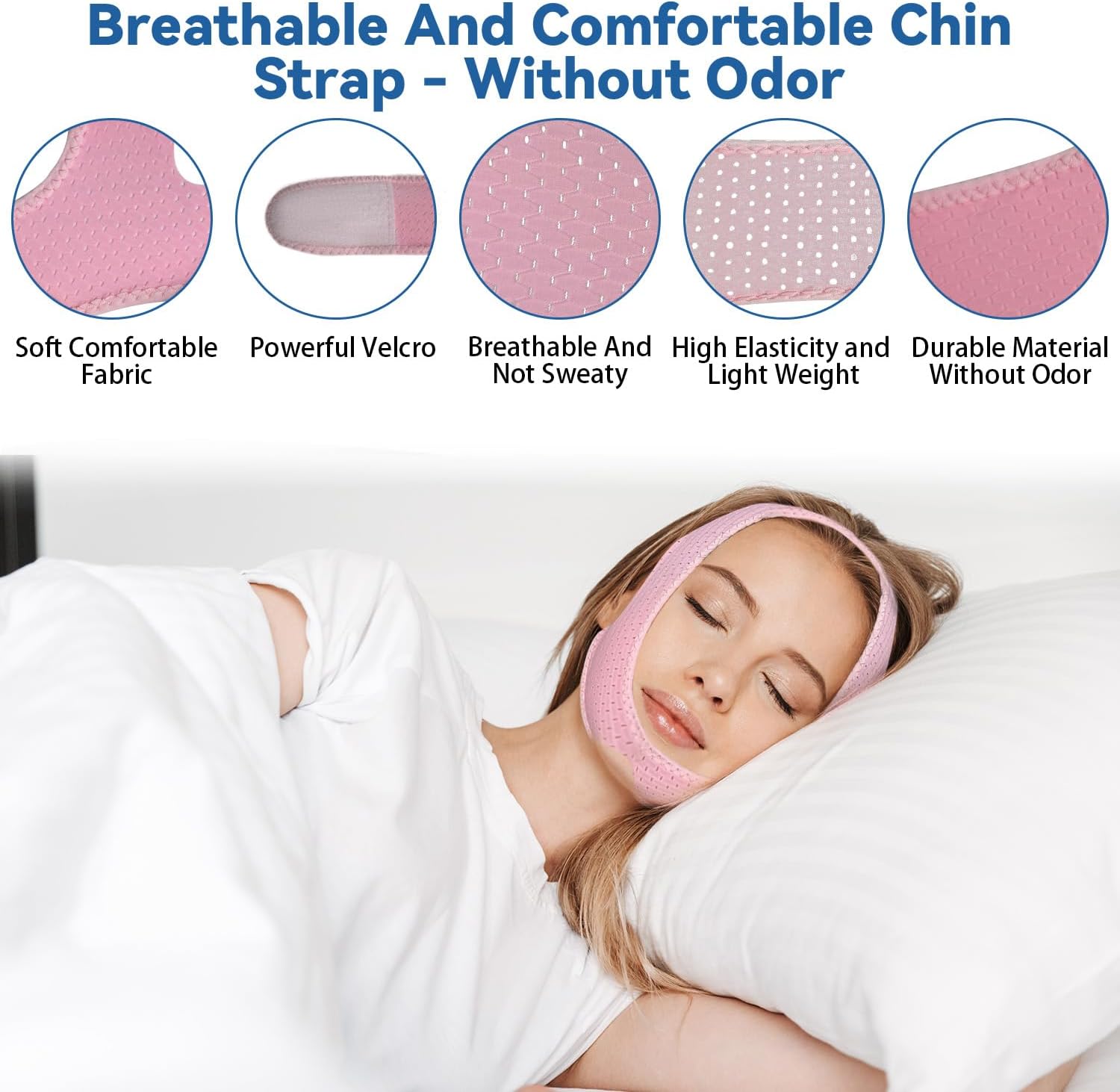 8 reviews for Chin Strap for Sleeping, Chin Strap for CPAP Users, Jaw Strap for Sleep Apnea, Adjustable & Breathable Chin Strap, Anti Snoring Devices,Snore Stopper for Men and Women, (Pink/M)