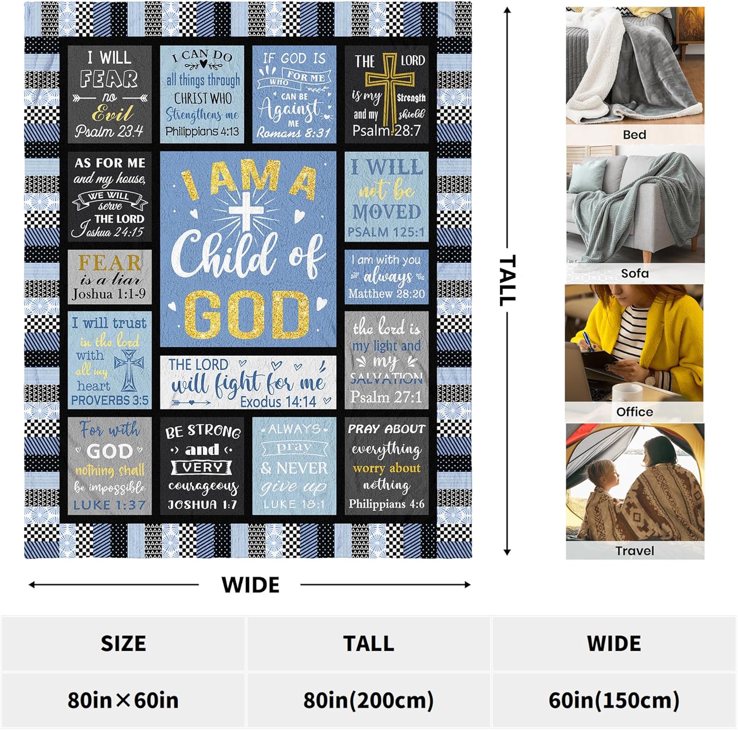 【BEST GIFTS】” I Am a Child of God. ” The blanket’s unique design and motivational words make the person who receives it feel warm, confident in the future, and full of strength! This is an excellent gift for family and friends.