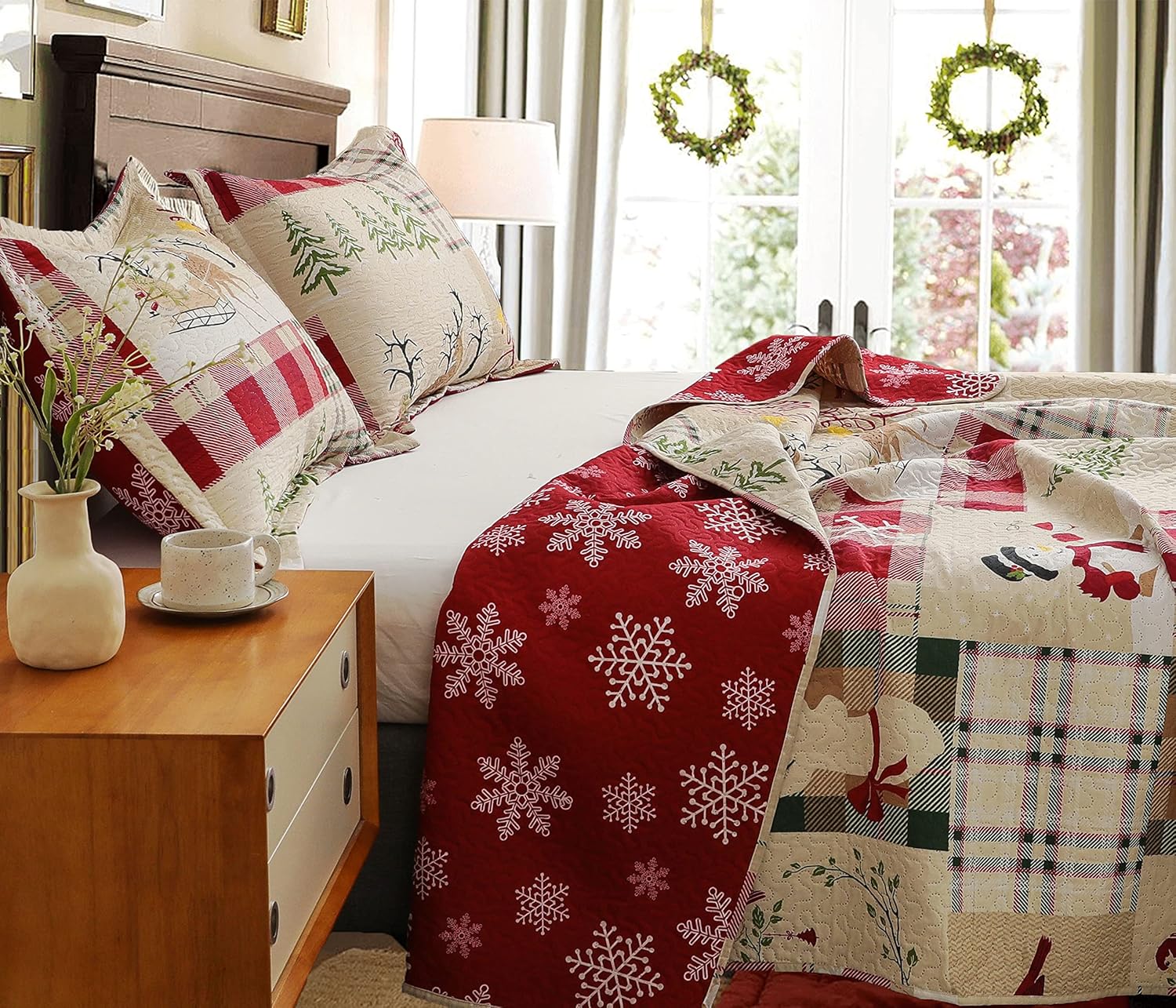 Important Note:Due to the pattern cutting on the fabric, the pattern of the pillowcase may not be exactly the same as the main picture. 🌟❤Care Instruction:Ultr soft Microfiber Christmas Quilt Set Lightweight Reversible Bedding,Christmas bedspread coverlet bedding set soft and cozy,lightweight quilt bedspread for luxurious warmth, let you enjoy the high quality sleep, Christmas Quilt Coverlet bedspread are durable,Machine wash in cold before use,soften after washing,suitable for all seasons.