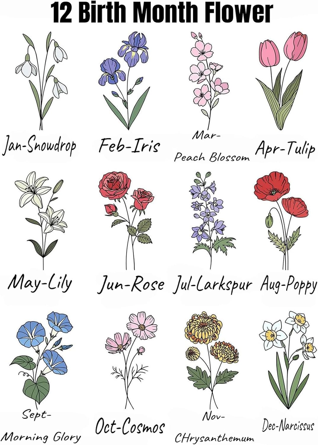 Custom Christmas Gifts for Mom — Personalized birth month flower custom canvas with names can be customized to feature both the flower associated with your/ your mother’s/ your grandma’s birth month and name, creating a truly unique and special gift.