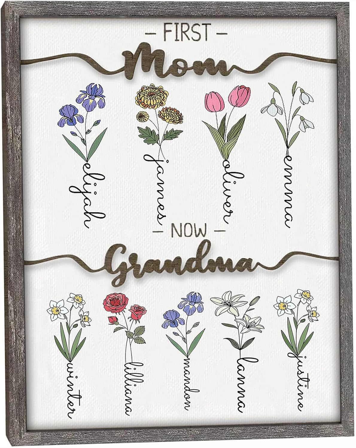 1 review for Christmas Gifts For Mom, Grandma, Customized Birth Month Flower with Names, Personalized Wood Plaque Wall Art Birthday Gifts Grandma Gifts From Grandkids