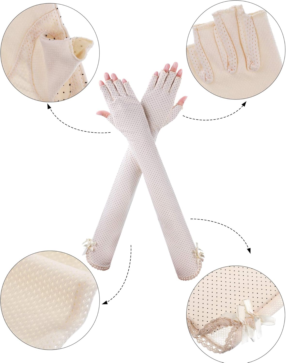 Chuangdi 2 Pairs Women UV Sun Protection Driving Gloves Touchscreen Arm Sun Block Gloves for Outdoor Sports Summer Supplies
