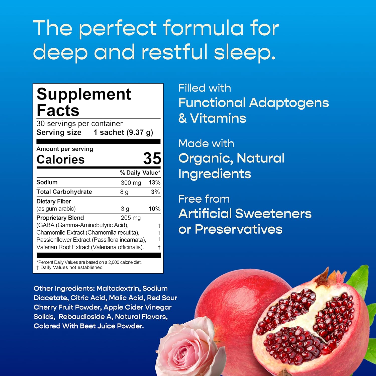 Circadian Unwind Natural Sleep Aid Hydration Packets – Nighttime Sleep Powder with GABA, Valerian Root, Chamomile, Passion Flower & Organic Apple Cider Vinegar – Pomegranate Rose 30 Pack