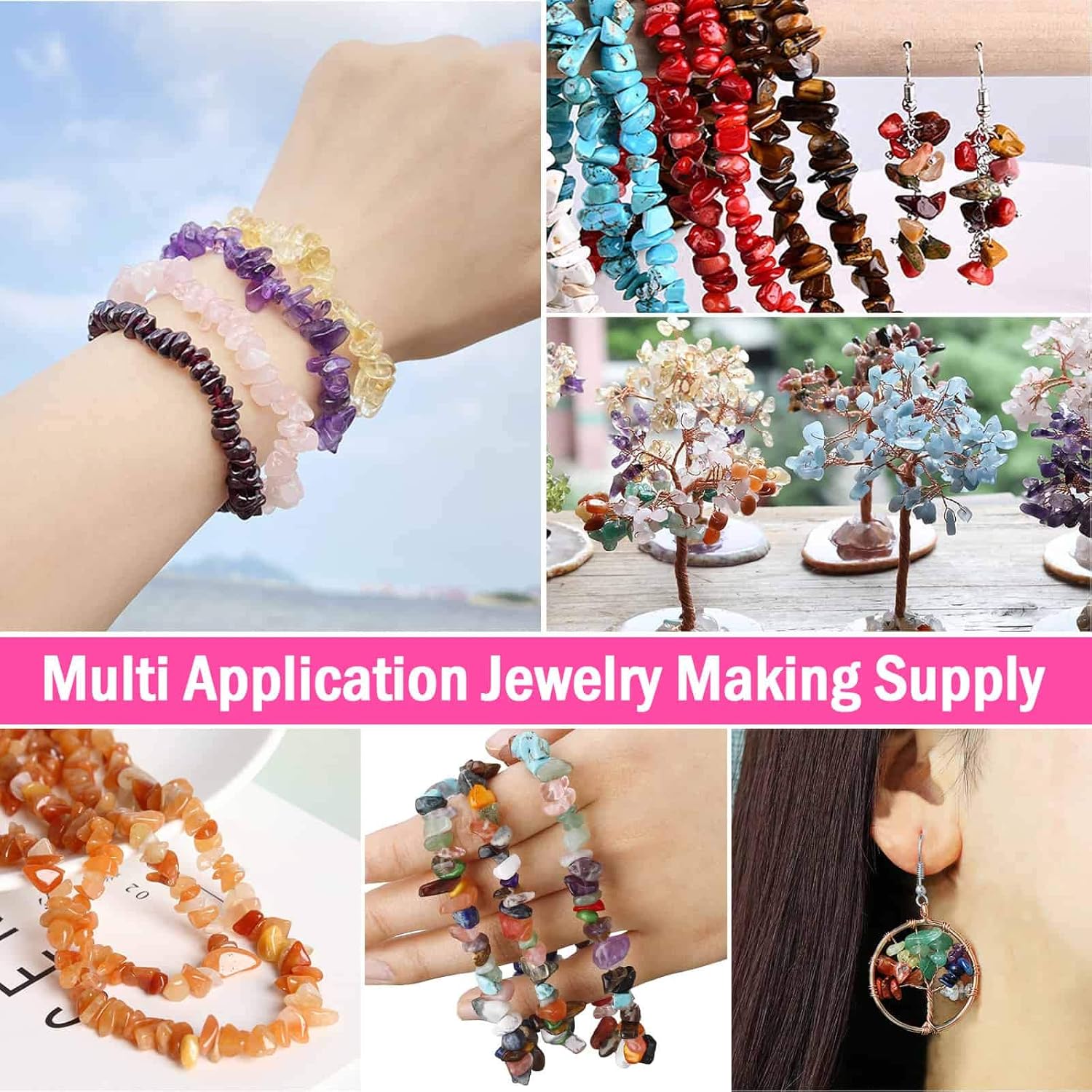 【1516PCS CRYSTAL JEWELRY MAKING KIT】- Crystal jewelry making kit total of 1516pcs, including 1200pcs of crystal chip beads in 24 colors, 3 rolls of jewelry copper wire and 2 rolls of clear bracelet string, 100pcs silver headpins, 100pcs jump rings, 40pcs silver spacer beads, 10pcs lobster clasps,10pcs silver charm pendants, 50pcs earring hooks, 1pc plastic box. Crystal chips for jewelry-making kits are perfect for beginners for a bracelet, earrings, rings, necklaces, and other DIY crafts